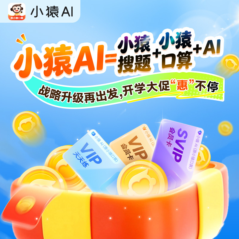 【小猿AI原小猿口算强势回归】下单联系客服兑换码 活动截止:3月22日 VIP年卡到手14个月 买一年送两月