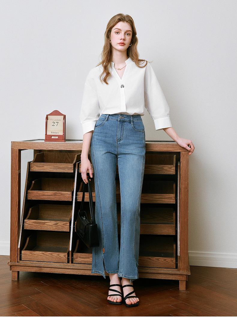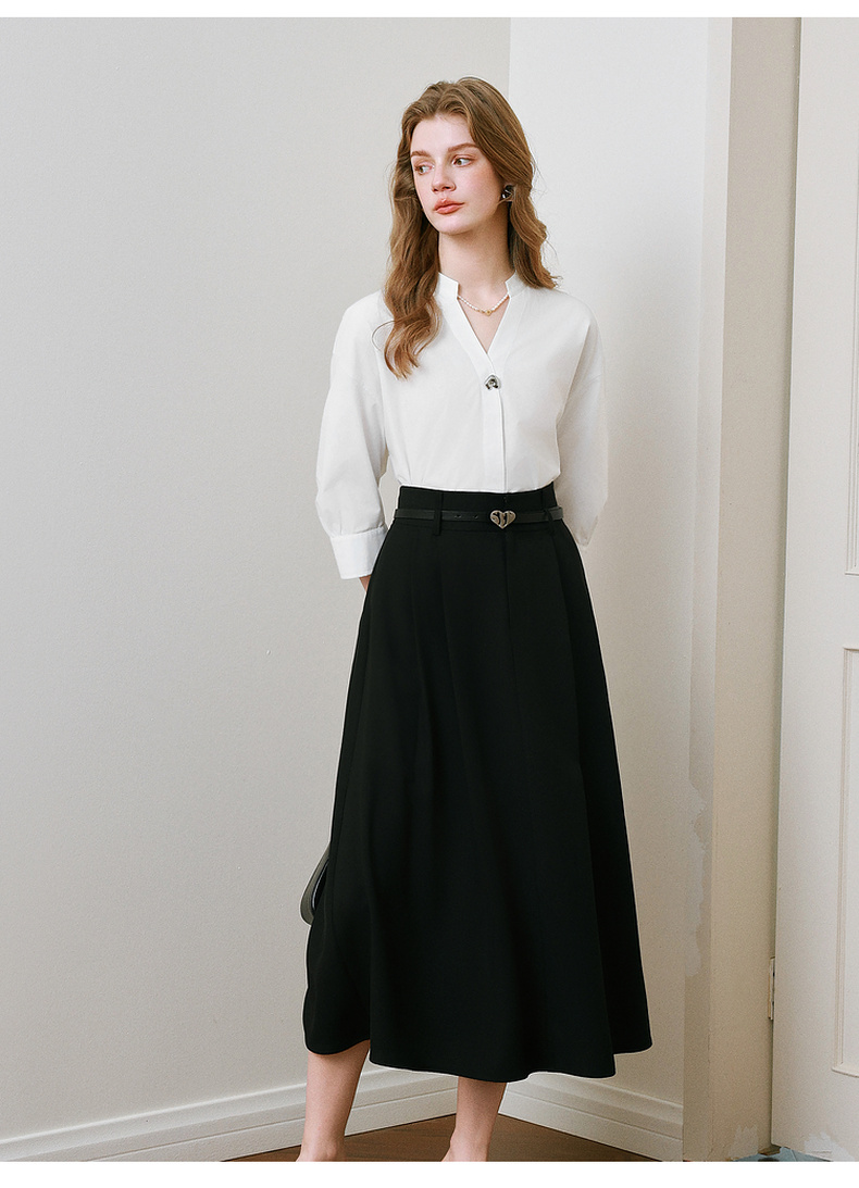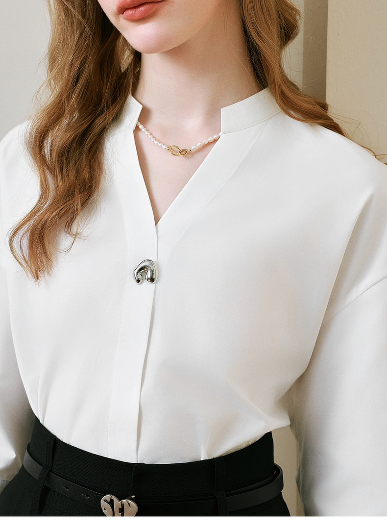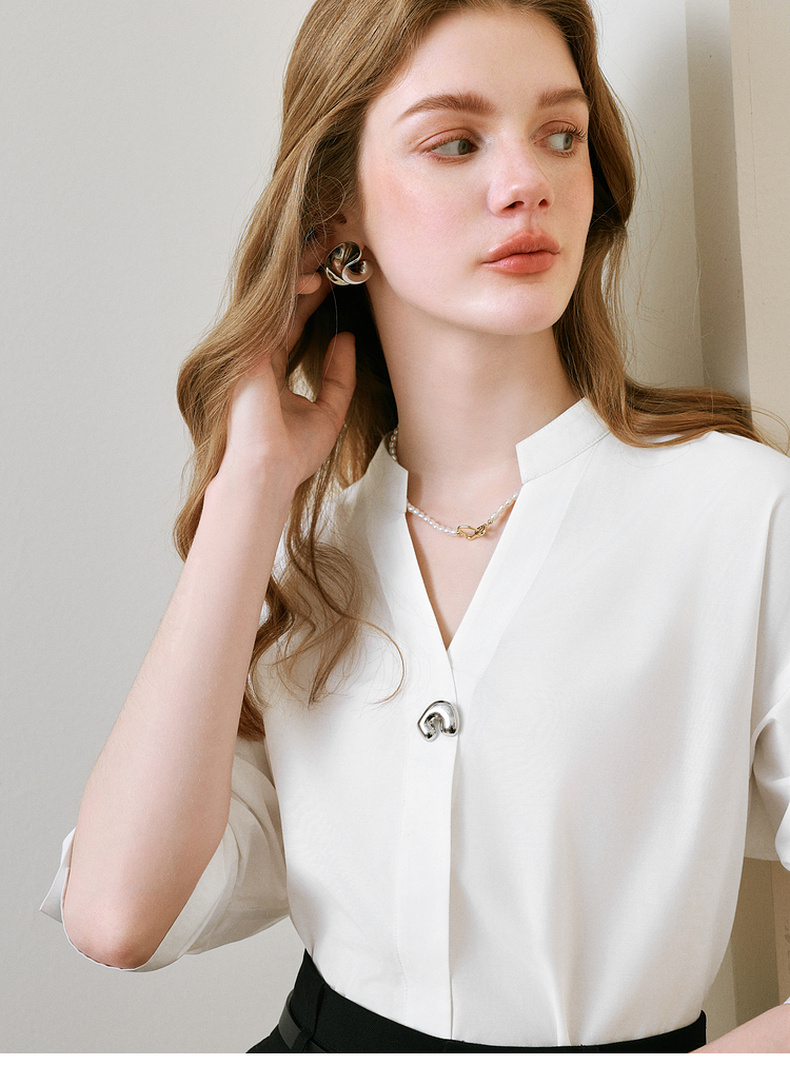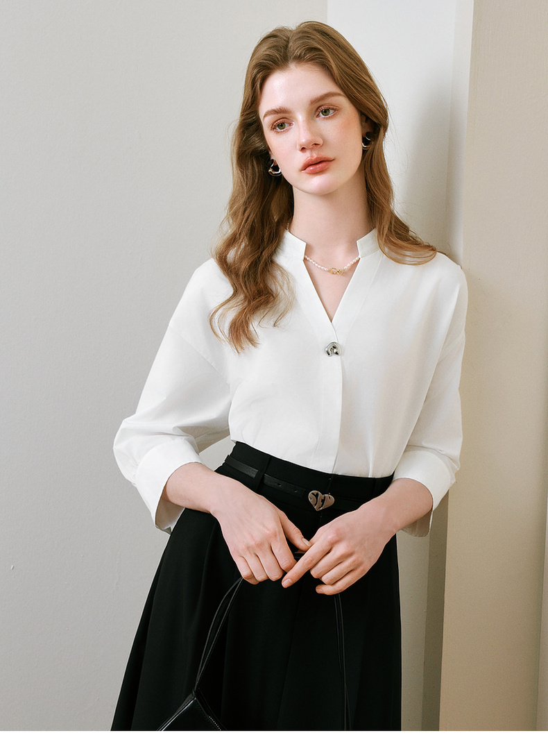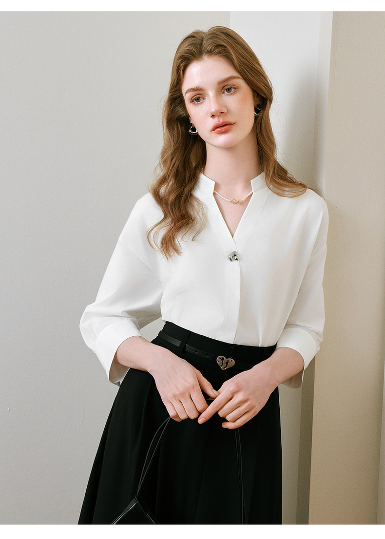【商场同款】诗凡黎V领白色衬衫2025夏新款气质上衣3G4120211