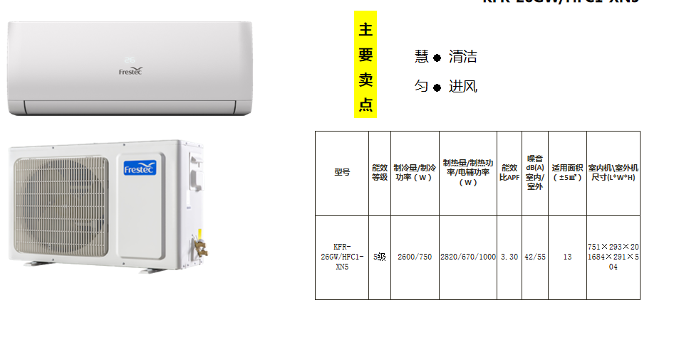 新飞 空调 KFR-26GW/HFC1-XN5 大1P定频 冷暖 5级能耗 挂式空调