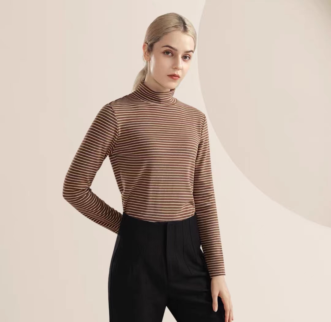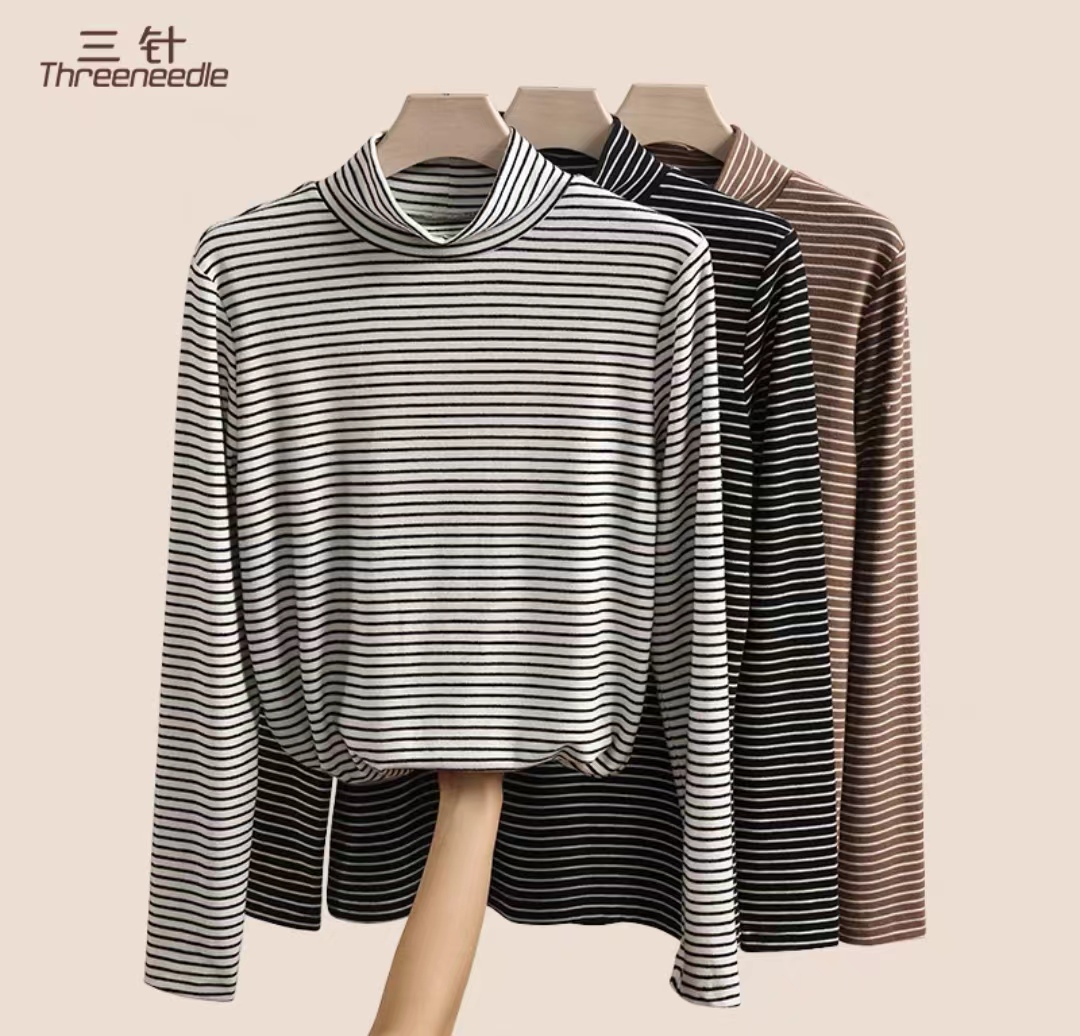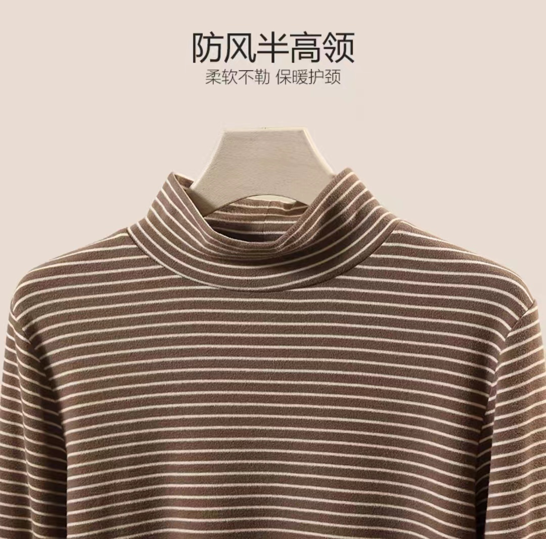 热卖爆款时尚百搭条纹德绒打底衫 柔软贴身 保暖舒适