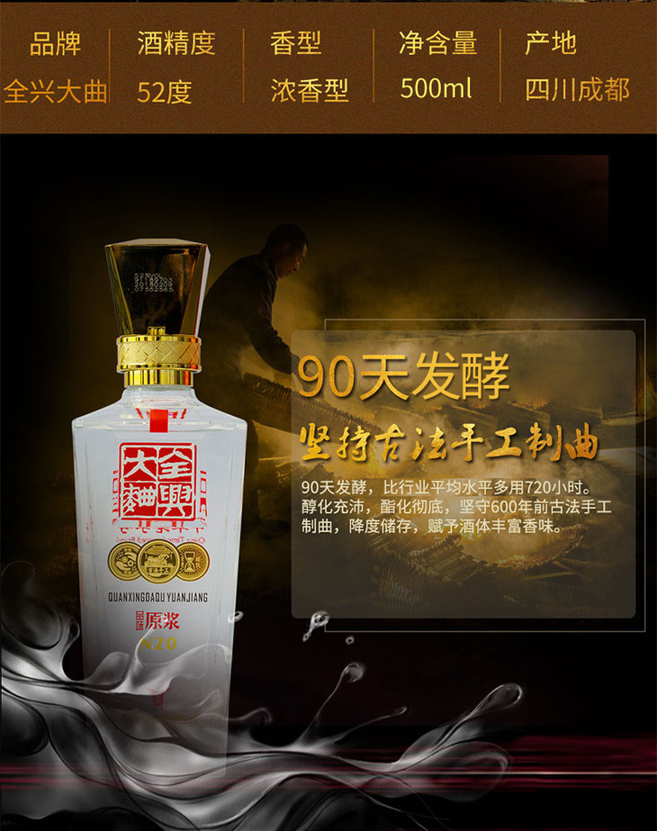 全兴大曲品味原浆N20 浓香型纯粮白酒52度500mL