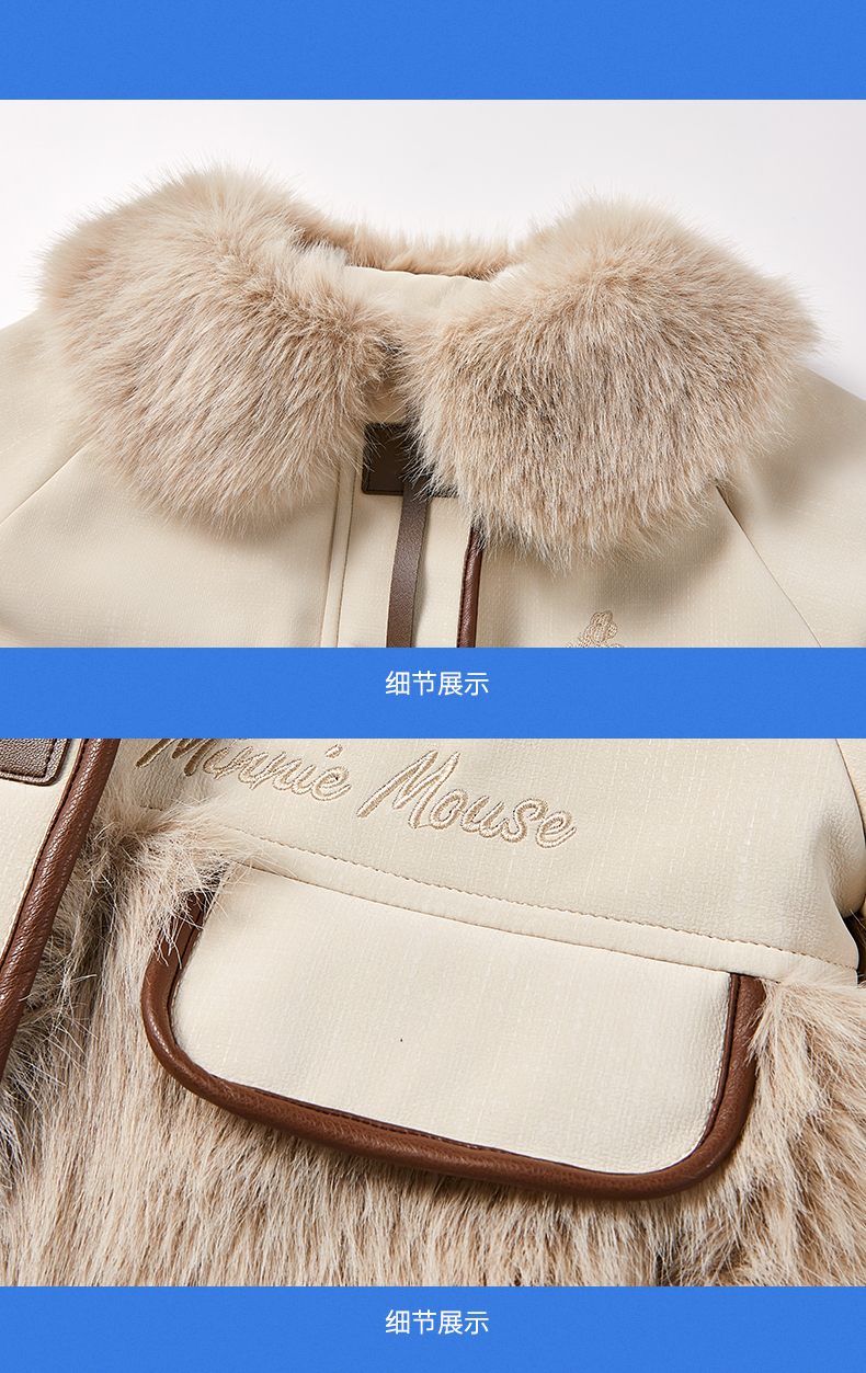 迪士尼女童冬季公主款贵气皮衣LD224S909 XHR