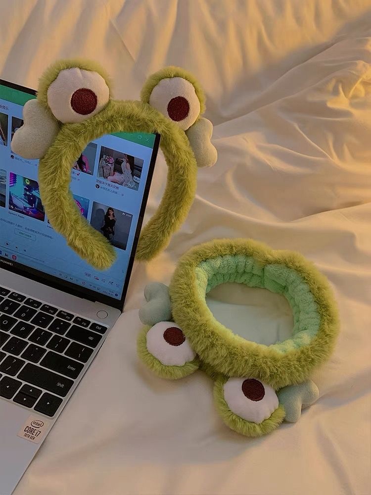 【可爱小青蛙束发带】 洗脸敷面膜专用 卡通搞怪毛绒发箍 冬季头箍发卡