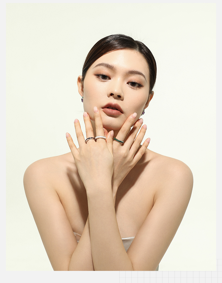 【花园】JULEE JULEE茱俪珠宝 18K白金孔雀石/紫水晶/白玛瑙 戒指