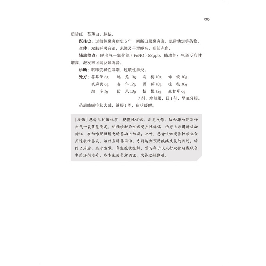 本书归纳和总结了王洋近40年的学术思想和临证经验,具有很强的实用性和知识性。全书分两篇。上篇介绍了王洋对慢性咳嗽、支气管哮喘、支气管扩张、慢性阻塞性肺疾病、间质性肺疾病、肺结节、肺癌等常见呼吸系统疾病及其并发症的诊疗经验、用药心得,首次公开各种病证经验方,并附有典型医案及分析,具有很强的临床实用性。下篇介绍了临床常用中医特色治疗,包括穴位贴敷、冬季膏方、自血疗法、肠疗、食疗等,首次公开穴位贴敷方药配比及穴位选择,采用辨病辨证辨体质的“三辨理论”开具个体化膏方,并详细介绍各种外治法操作流程及相关注意事项。