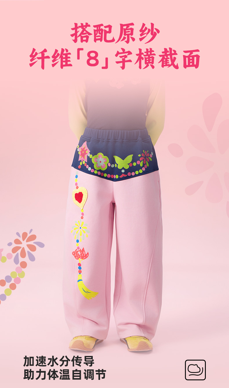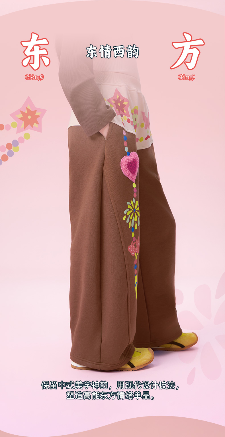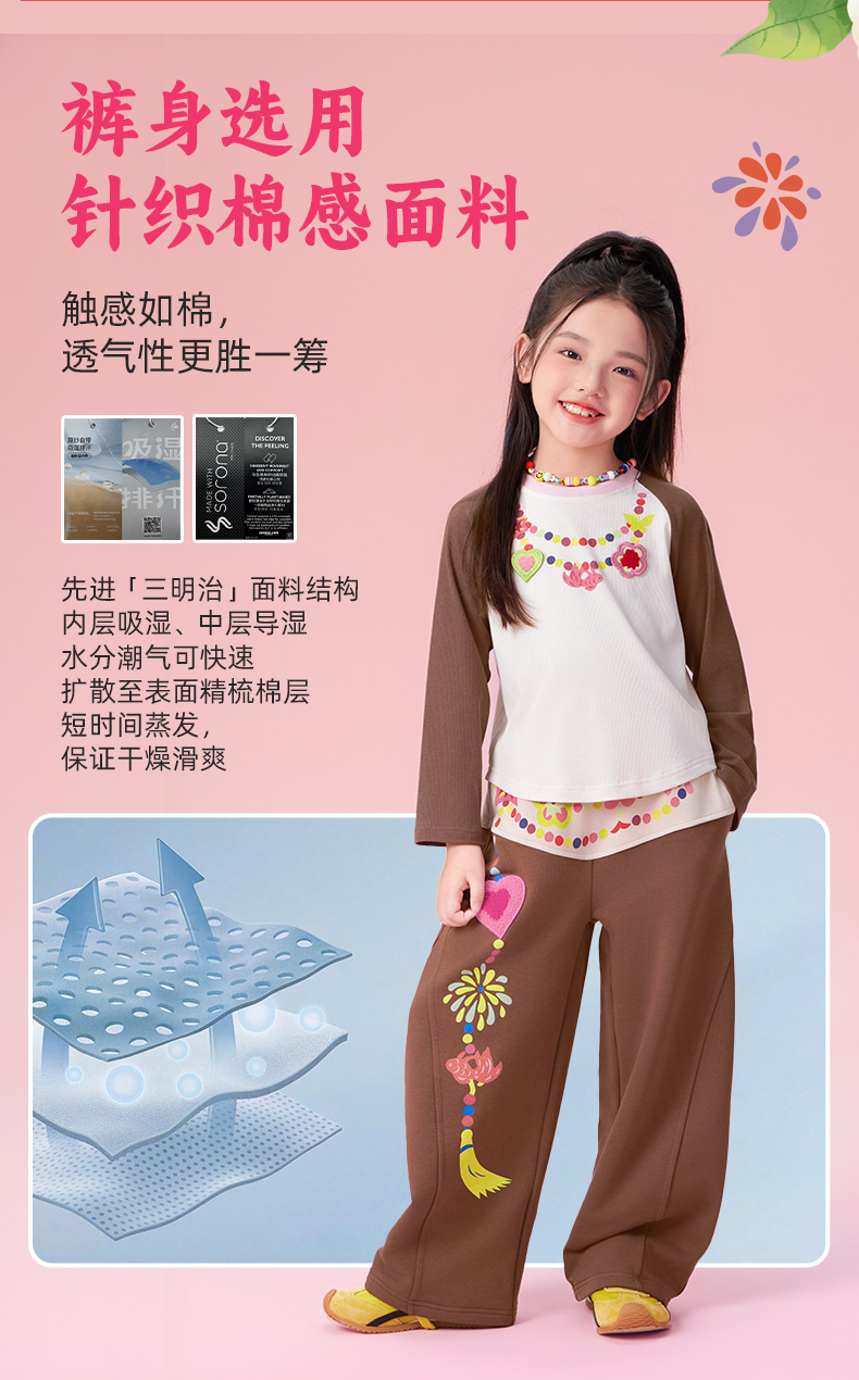 年衣童装儿童长裤25年秋季新款高腰拼色公主宽松裤子弯刀裤阔腿裤花火虹心长裤