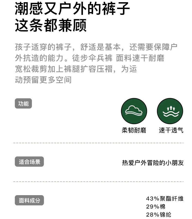 春夏季上新贝叮熊潮童休闲伞兵裤