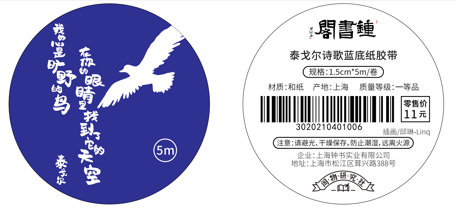 钟书阁泰戈尔诗歌蓝底胶带和纸胶带