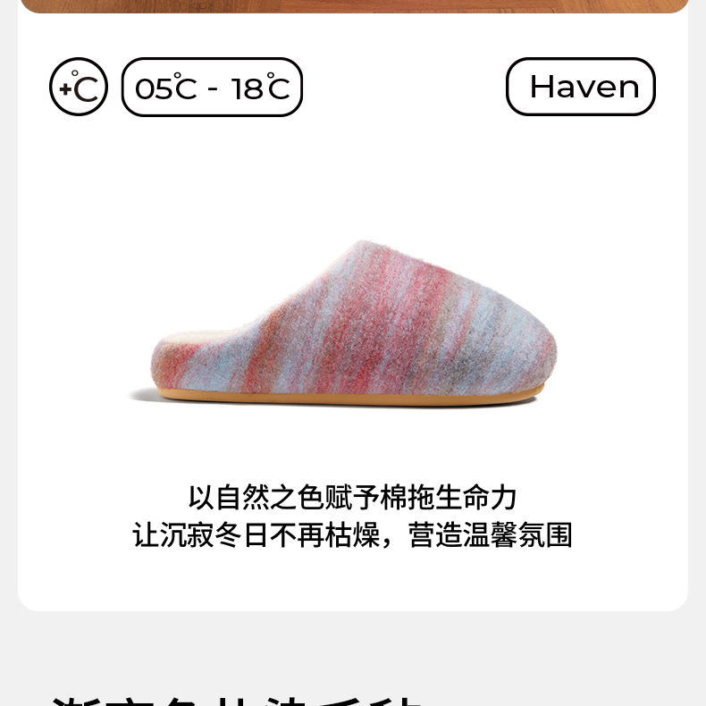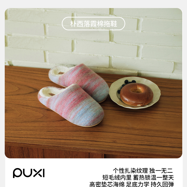 朴西落霞棉拖鞋女款2025秋冬新款室内家居防滑毛绒舒适保暖拖鞋男
