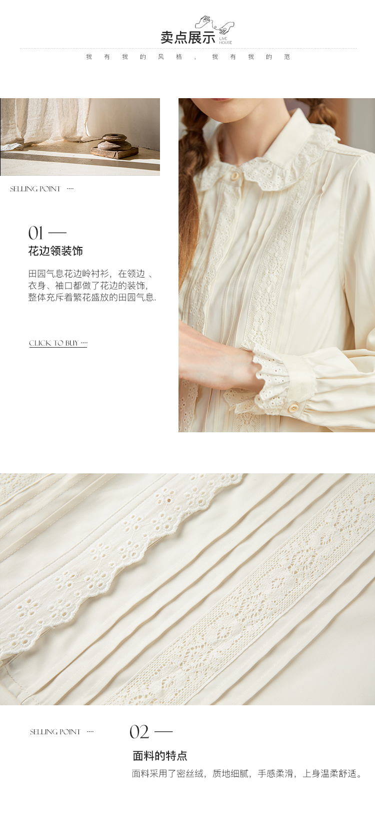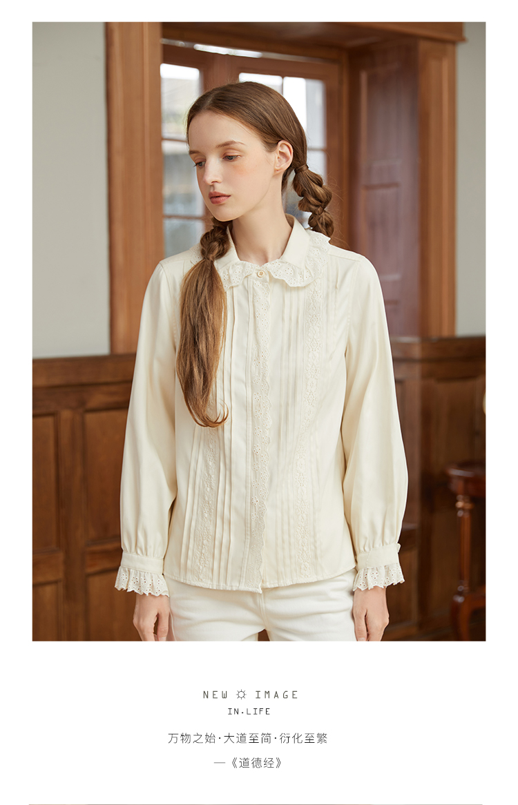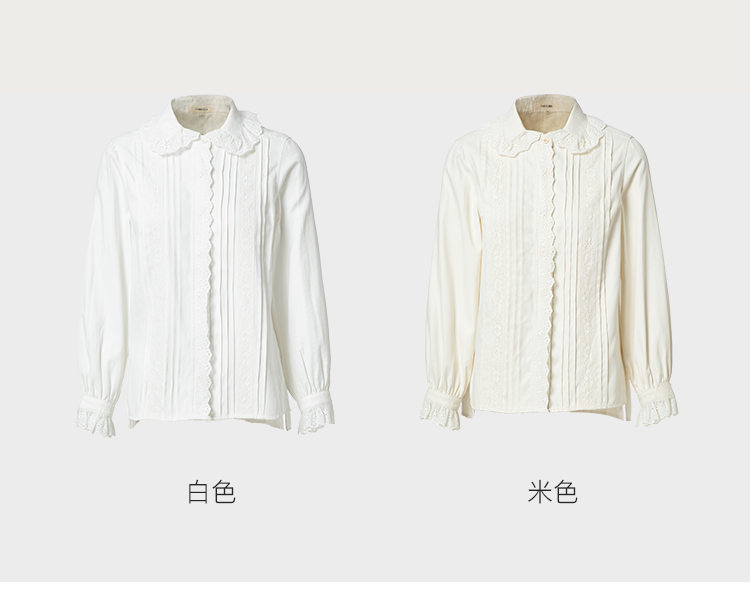 Famecoco范可儿文艺花边衬衣女长袖衬衫打底内搭纯色F228BH005