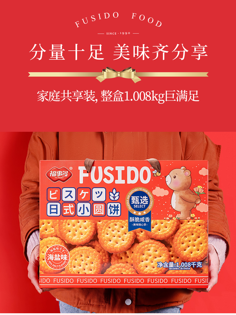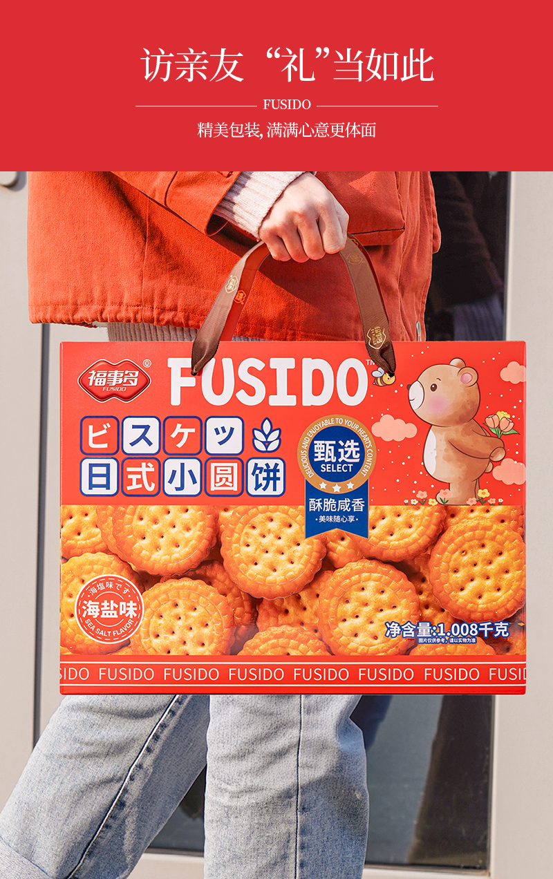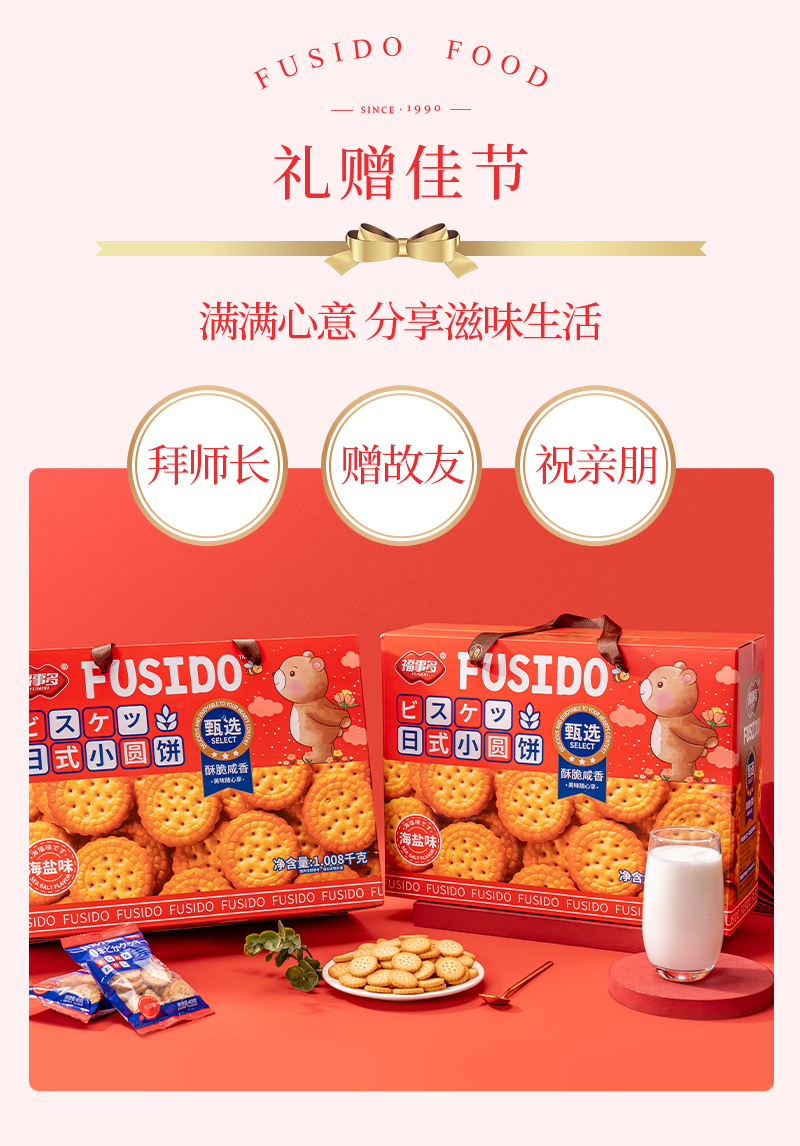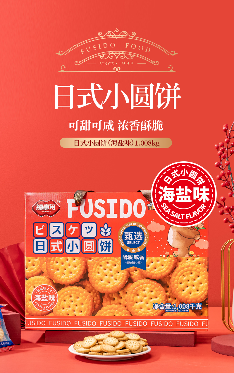 【马年佳节好礼!福事多日式小圆饼礼盒】日式小圆饼(海盐味)1008g,咸与甜的美味碰撞,清爽咸香混着奶香,0反式脂肪酸,美味健康又营养,酥脆解馋即食海盐味,下午茶休闲零食,春节年货佳节好礼L