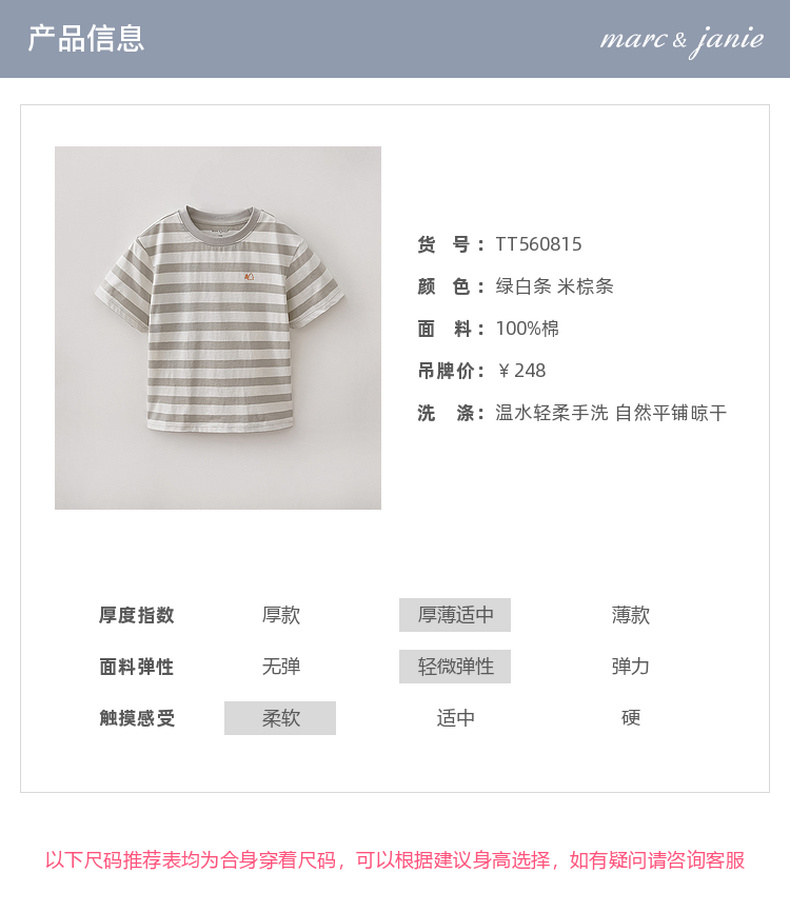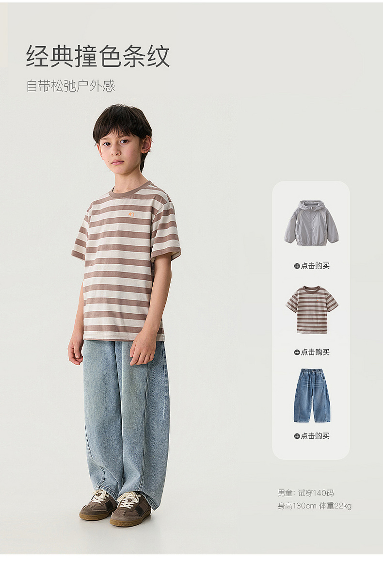 马克珍妮山系条纹男童追风纯棉T2026年夏装新款560815
