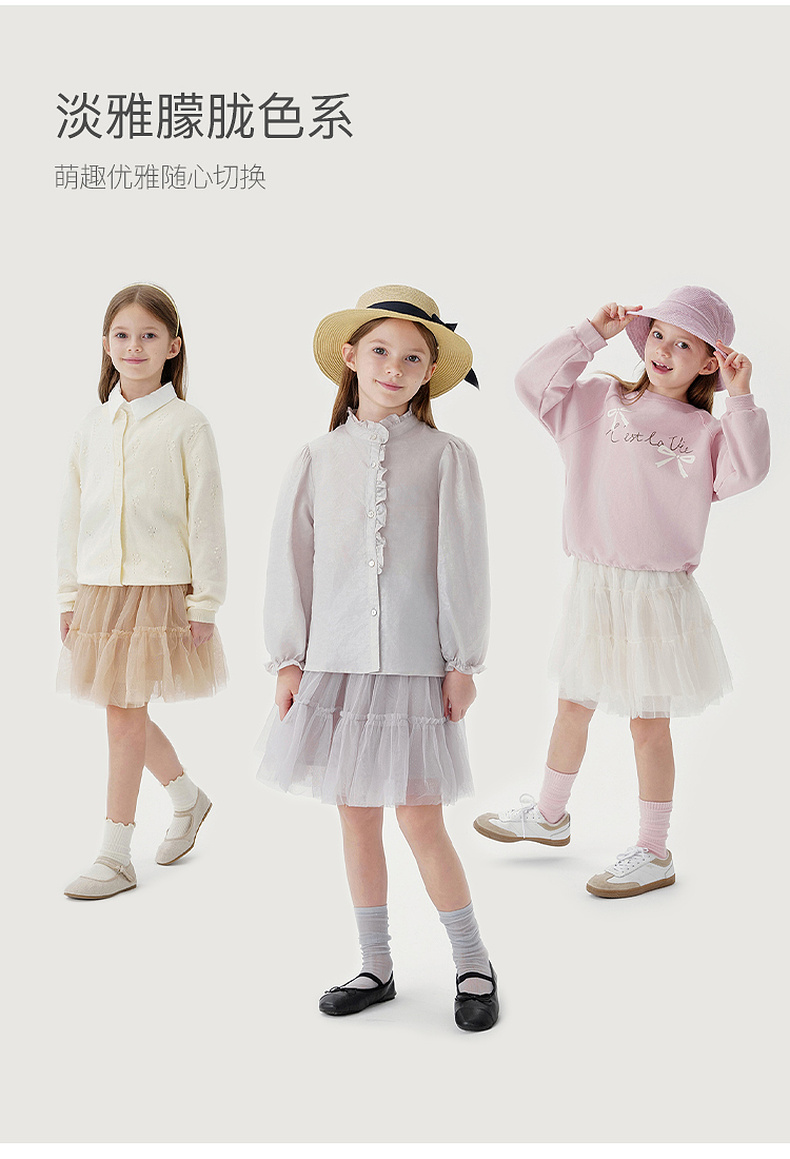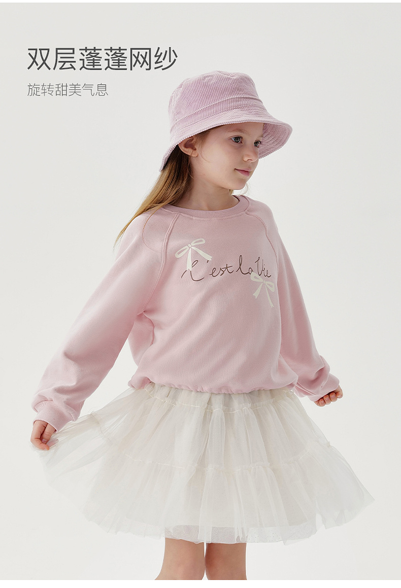 马克珍妮女童甜美木耳边网纱半裙2024年秋装新款241116