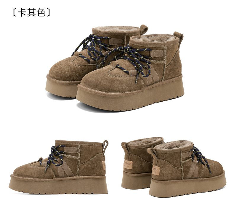 星期六皮毛一体保暖厚底雪地靴SSD4118CRT