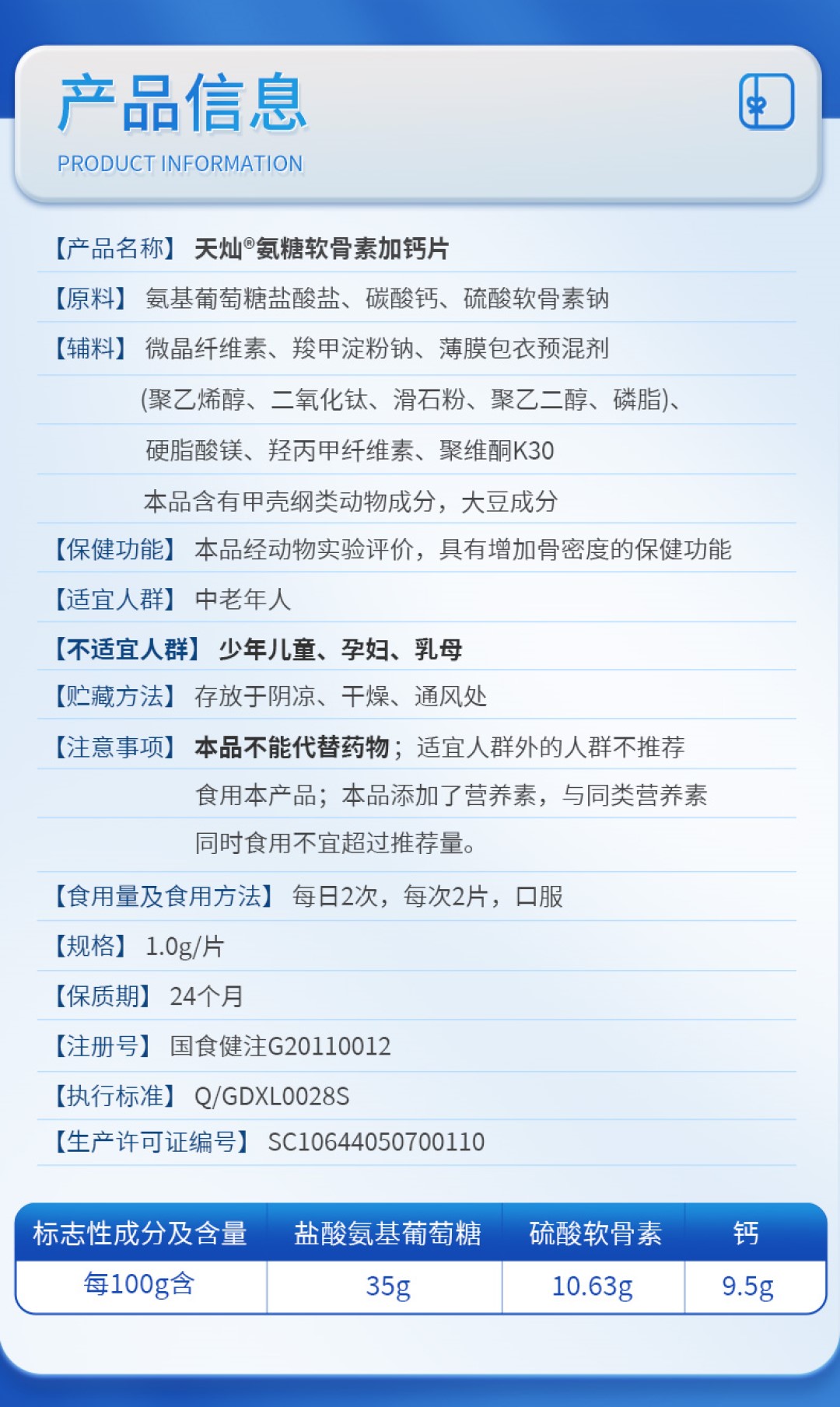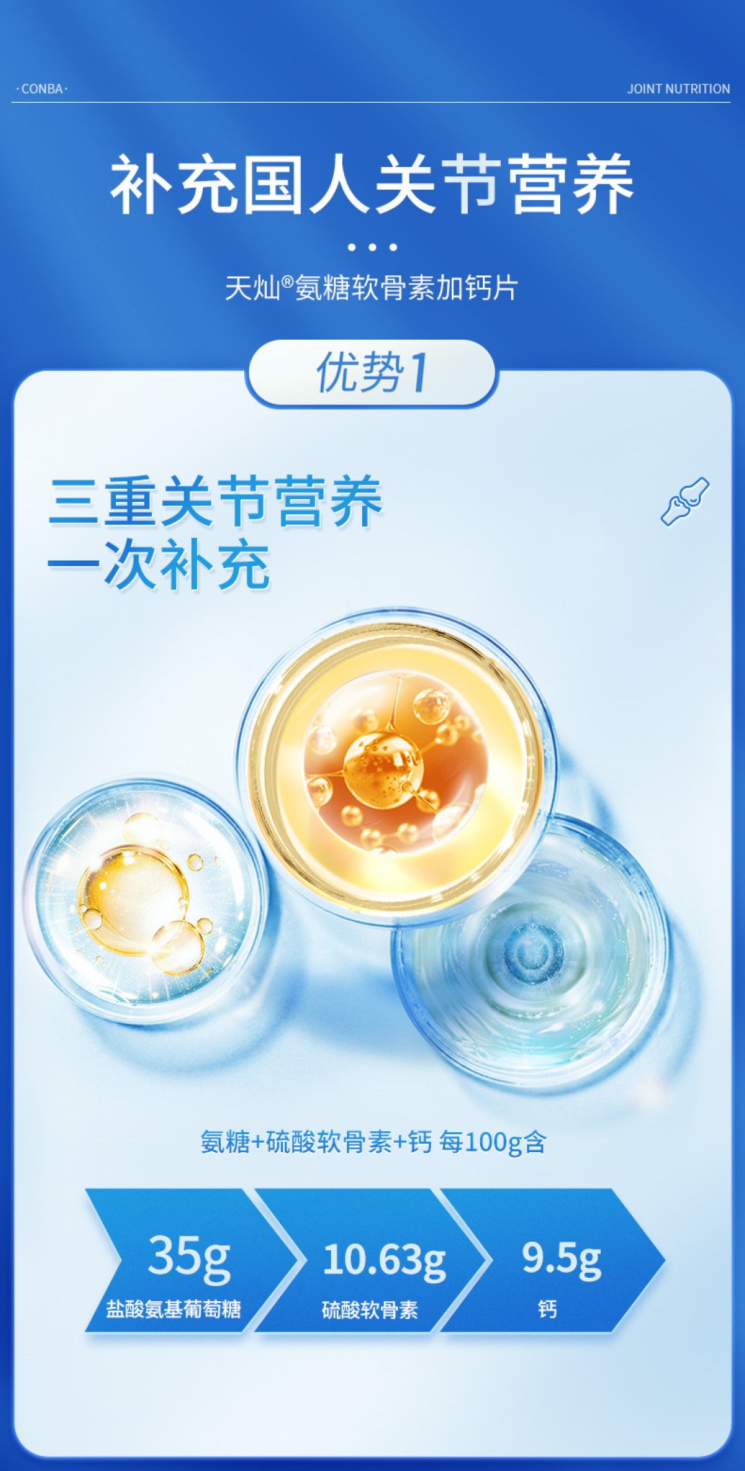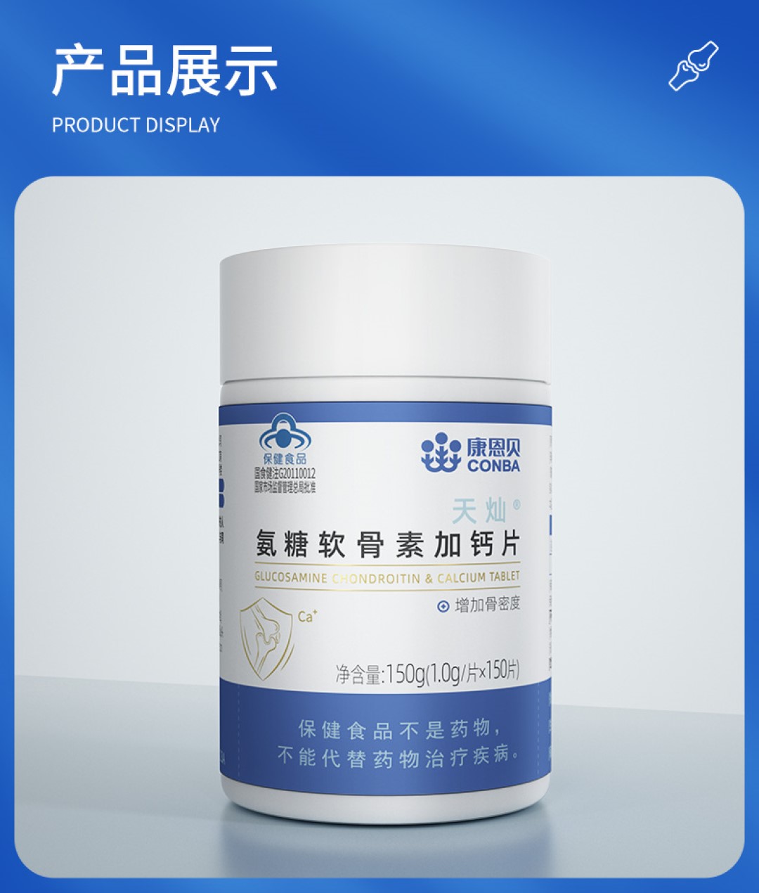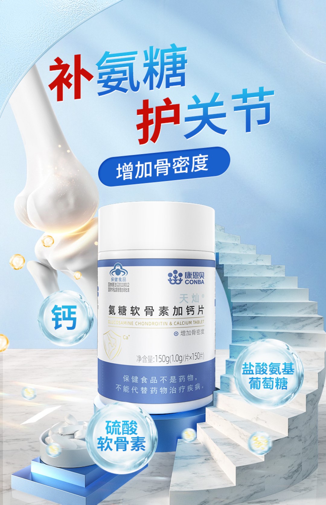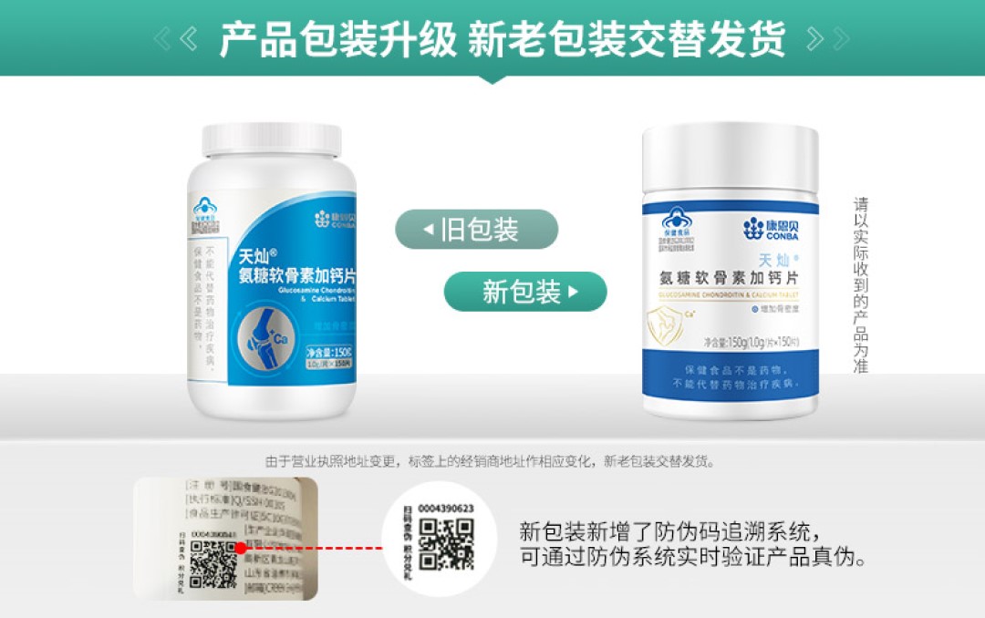 150片康恩贝氨糖软骨素加钙片碳酸钙中老年补品补钙维骨力