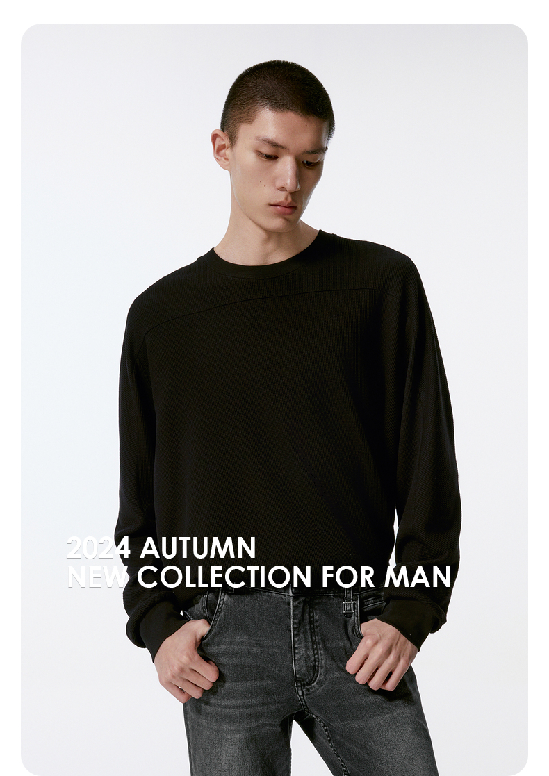 GXG男装 多色华夫格简约基础设计长袖T恤24年秋季热卖G24X343001