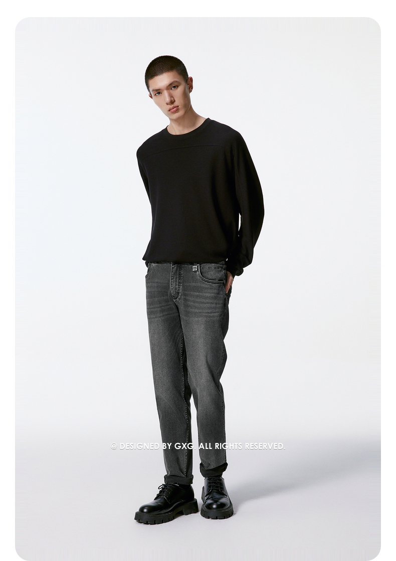 GXG男装 复古经典黑色修身耐磨四面弹力直筒牛仔裤 2025秋季新品
