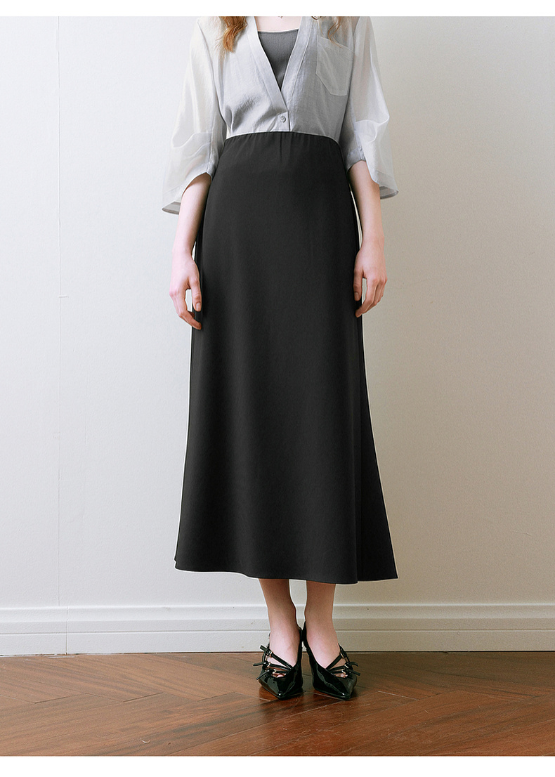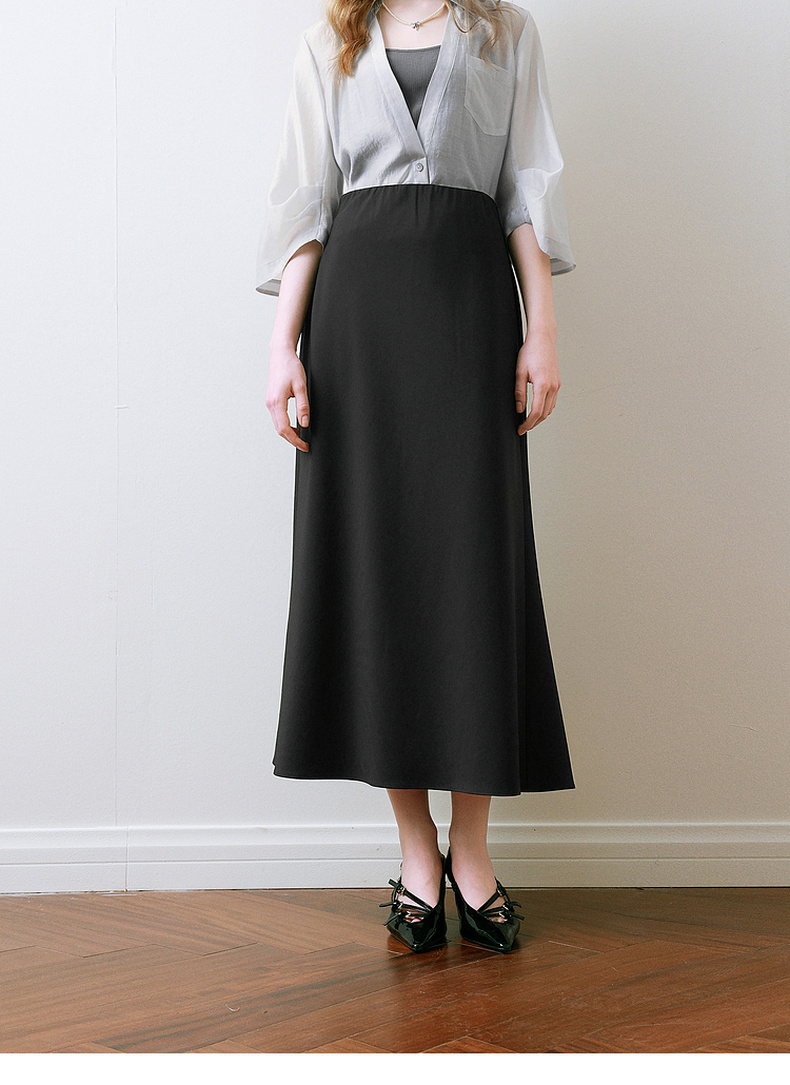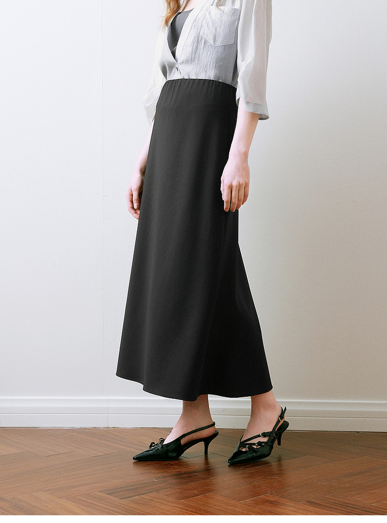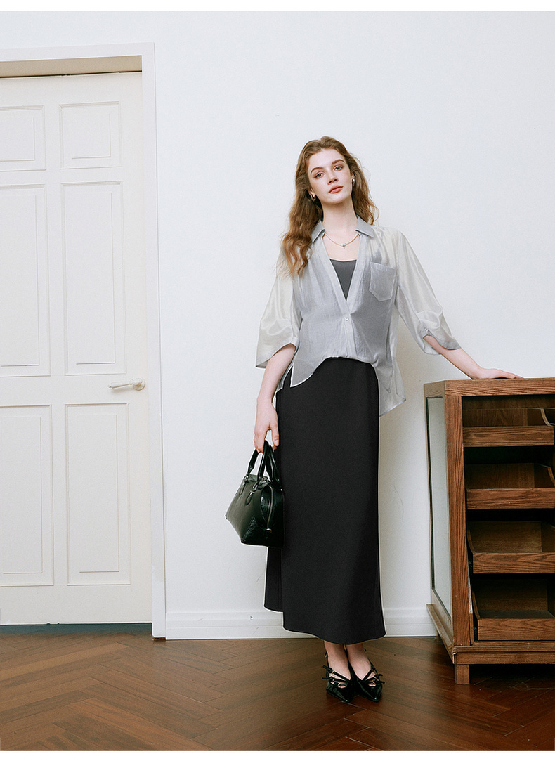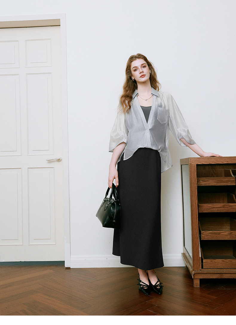 【商场同款】诗凡黎黑色通勤半身裙25夏新款简约中长裙3G4240361