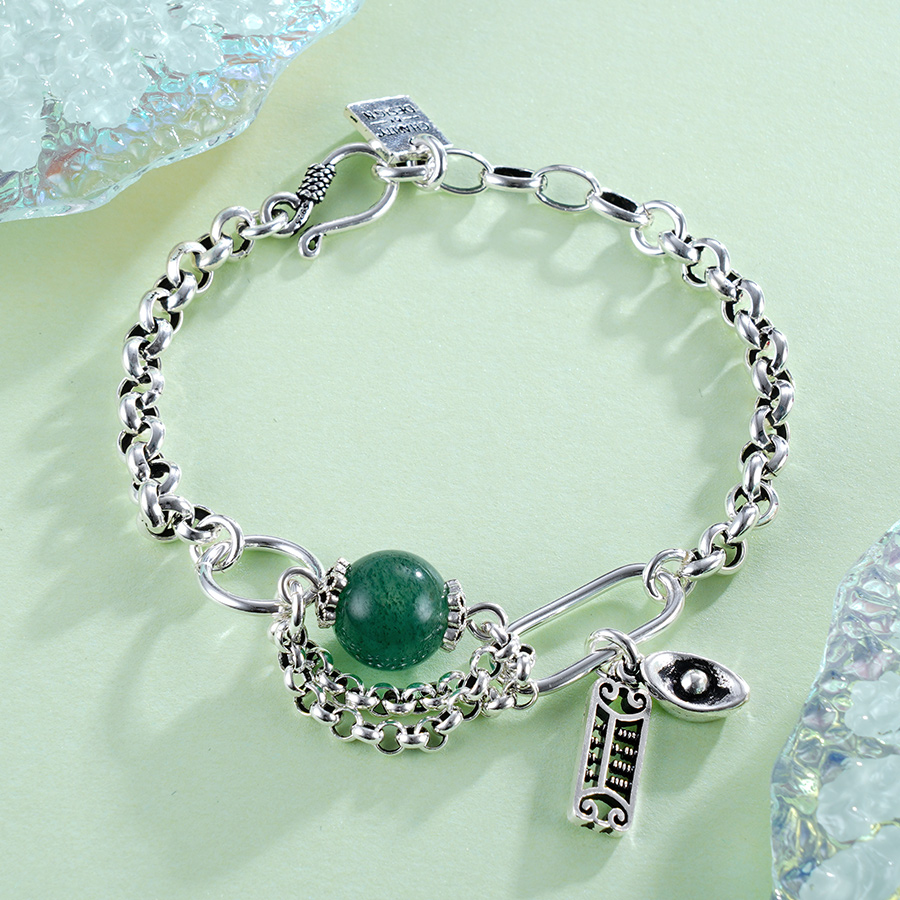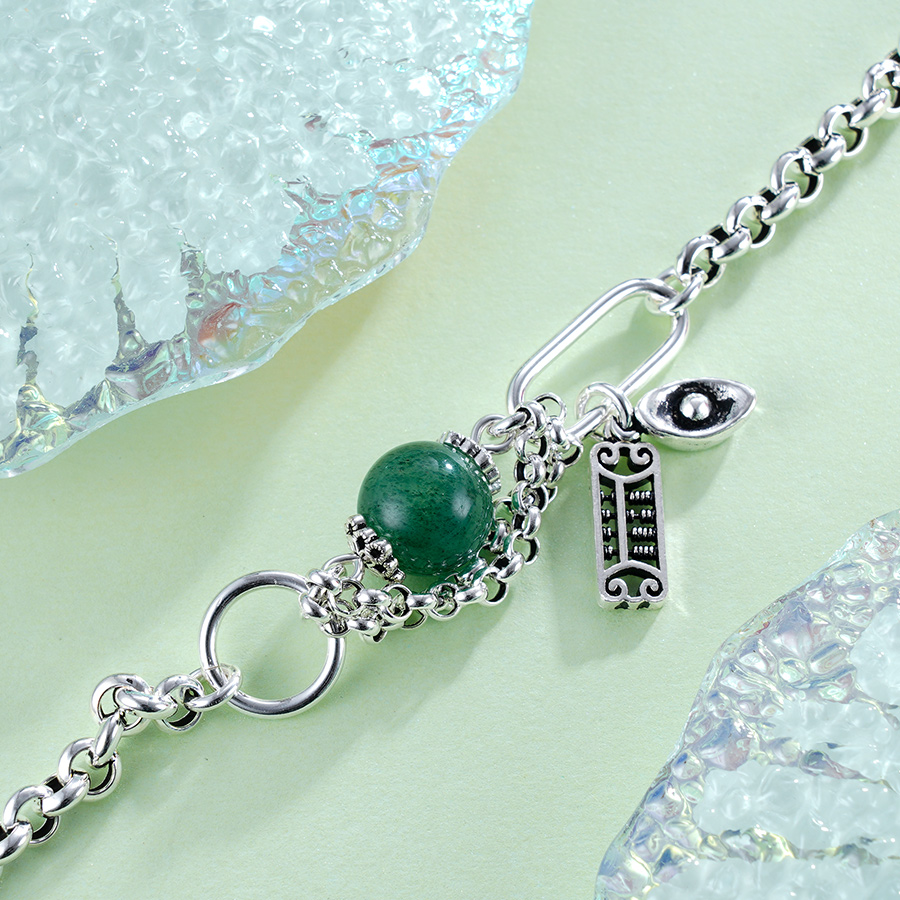 子佩集S925银串珠复古手链【TSB0001-25】绿水晶手链算盘元宝2402