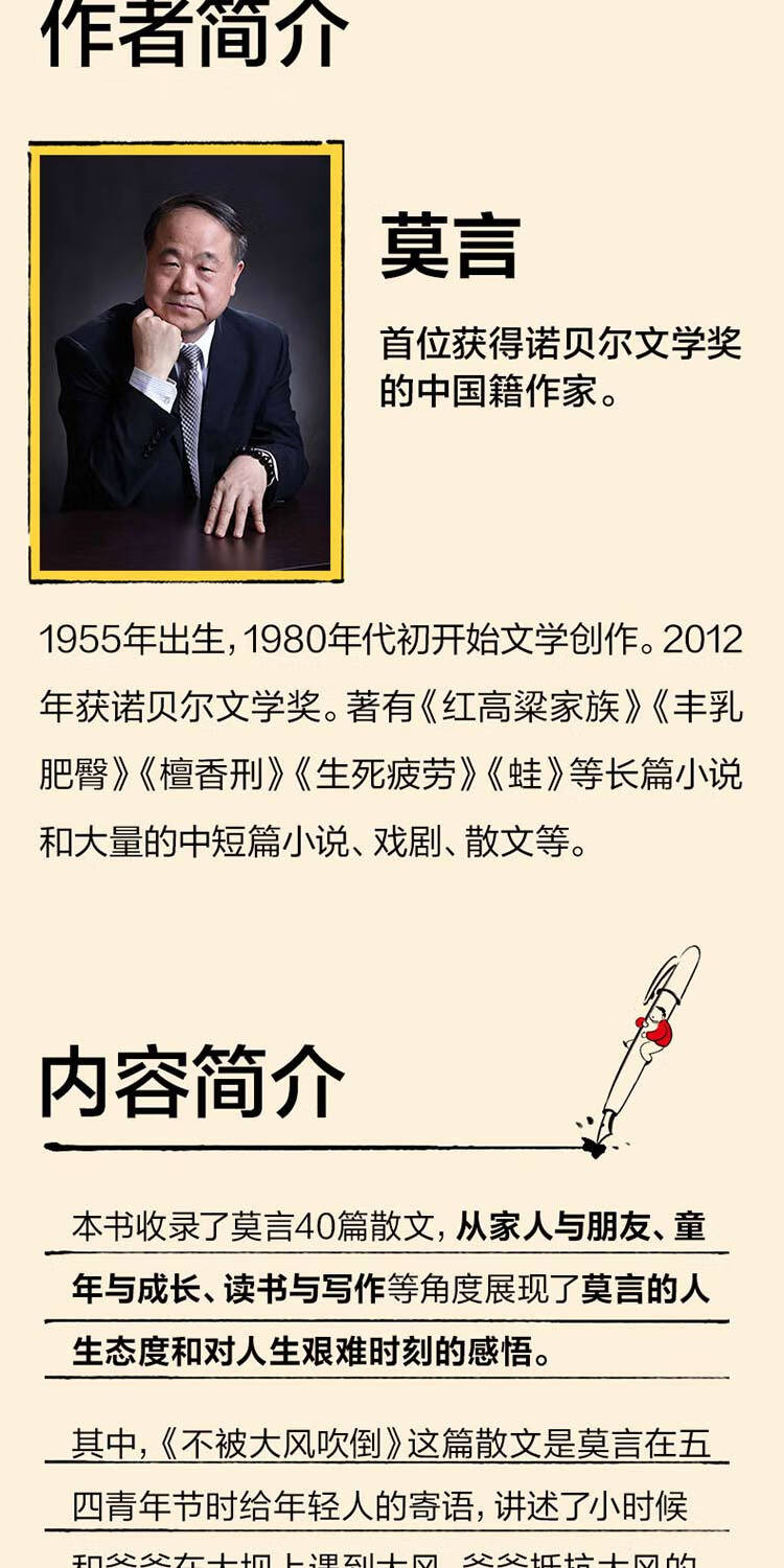 不被大风吹倒 诺奖得主莫言散文代表作 讲述莫言在人生艰难时刻的感悟 不被大风吹倒