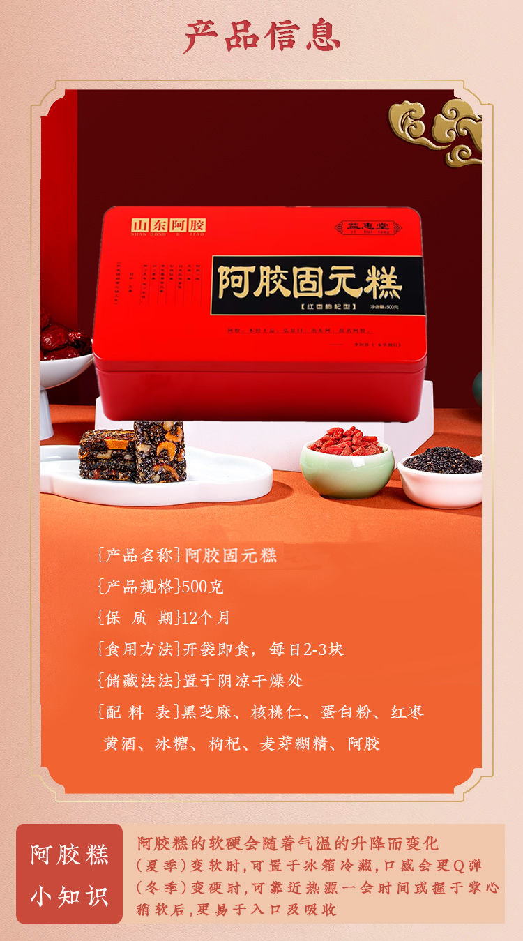 阿胶糕即食山东东阿女士阿胶固元糕方糕补红枣枸杞阿胶糕