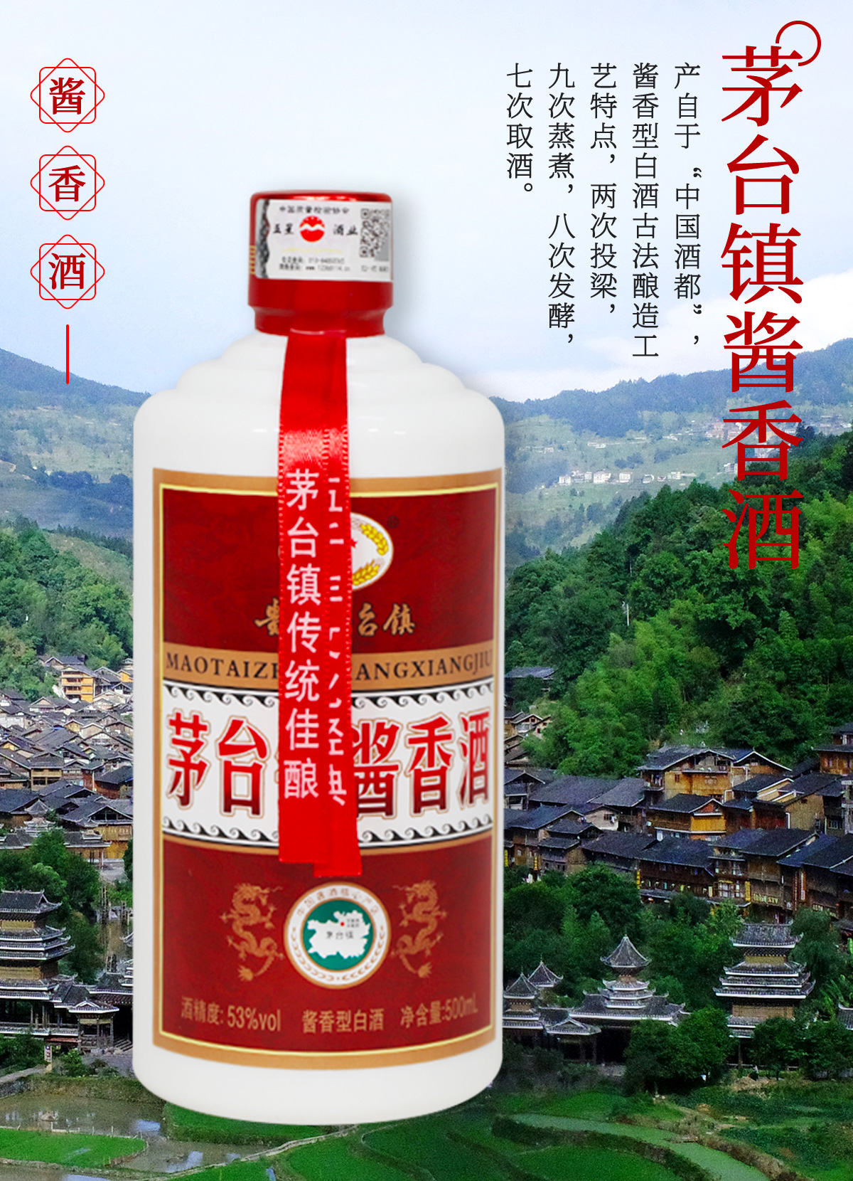 53度五星酱酒2019年茅台镇酱香酒500ML白酒