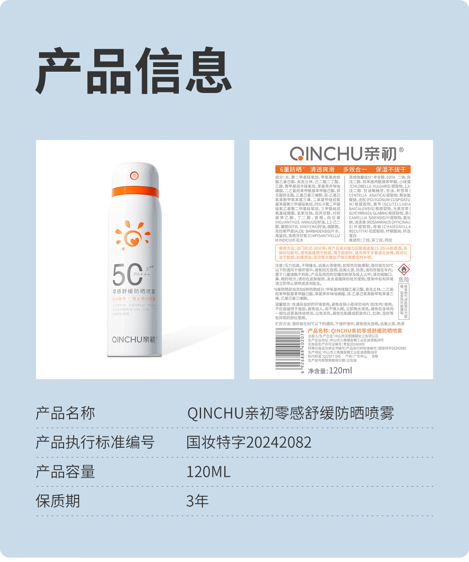 【夏季主推爆款】亲初 舒缓防晒喷雾 120ml