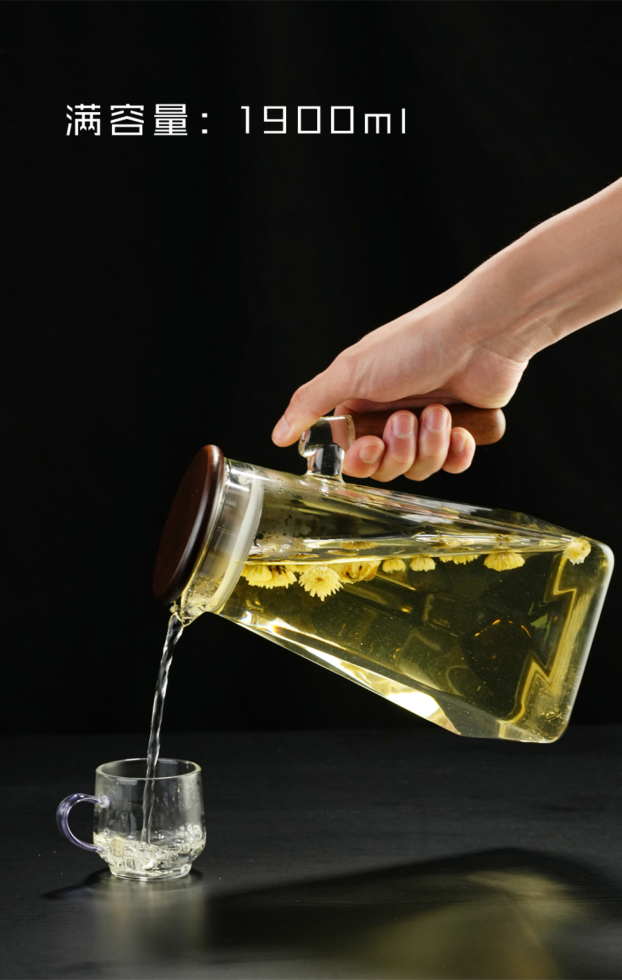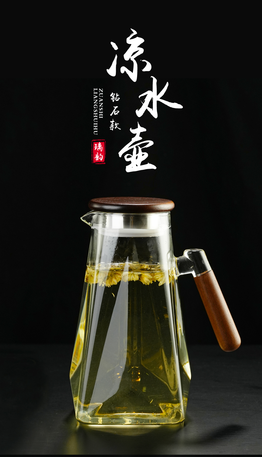 璃韵钻石凉水壶/透明款家用大容量耐热高硼硅玻璃装凉白开水壶泡茶壶/1900ML