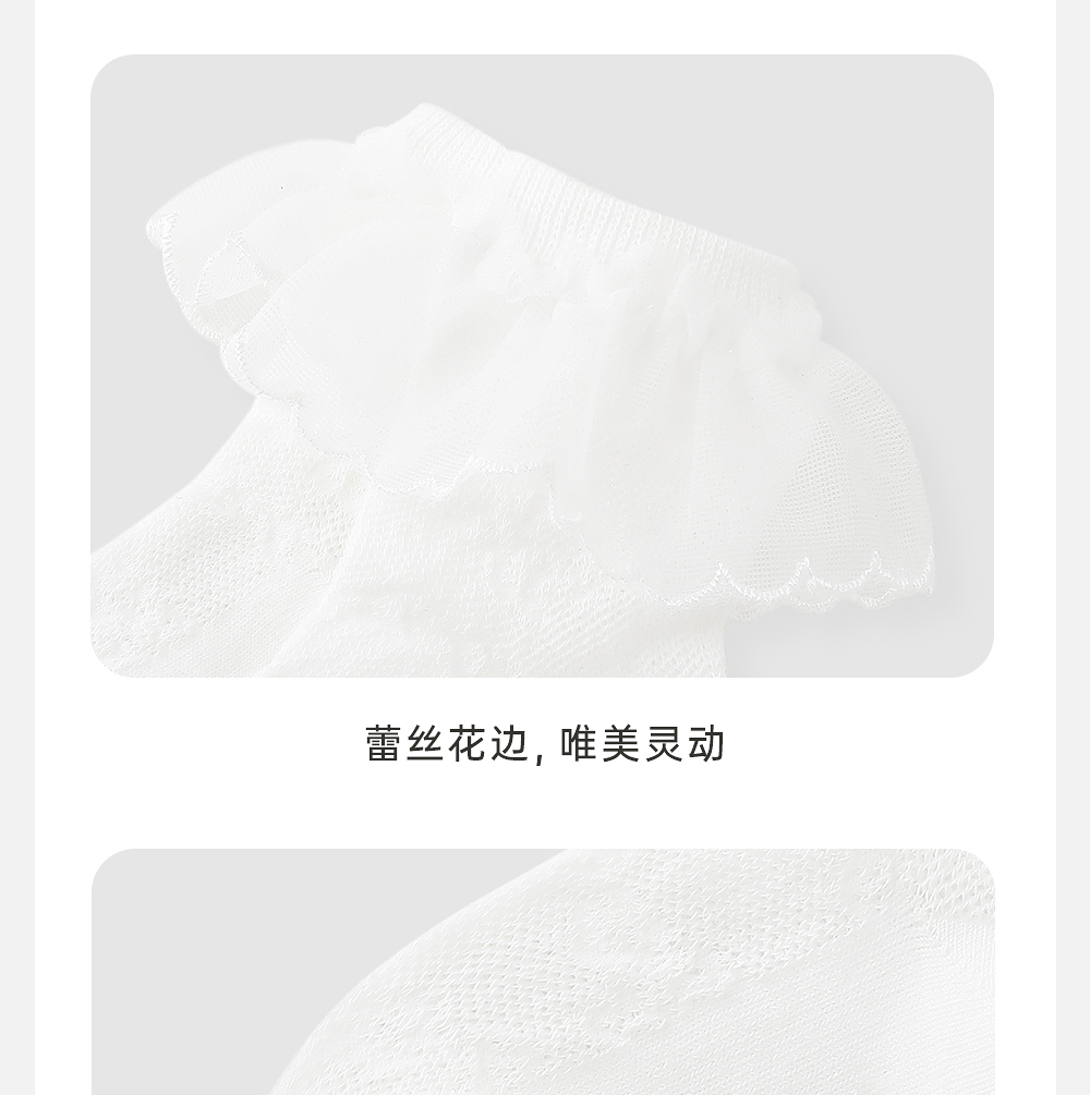英氏儿童袜子春夏透气女童抗菌袜子2025新款蕾丝袜YIWAJ2R042A