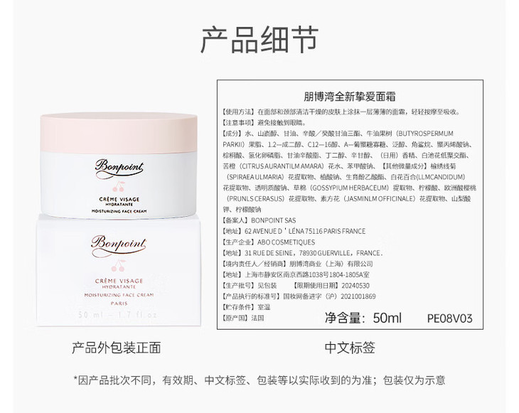 【跨境进口】Bonpoint小樱桃 儿童面霜50ml 宝宝保湿肌肤小白裙 (效期27年12月)| 义乌仓 报关后不支持退换货 敬请谅解