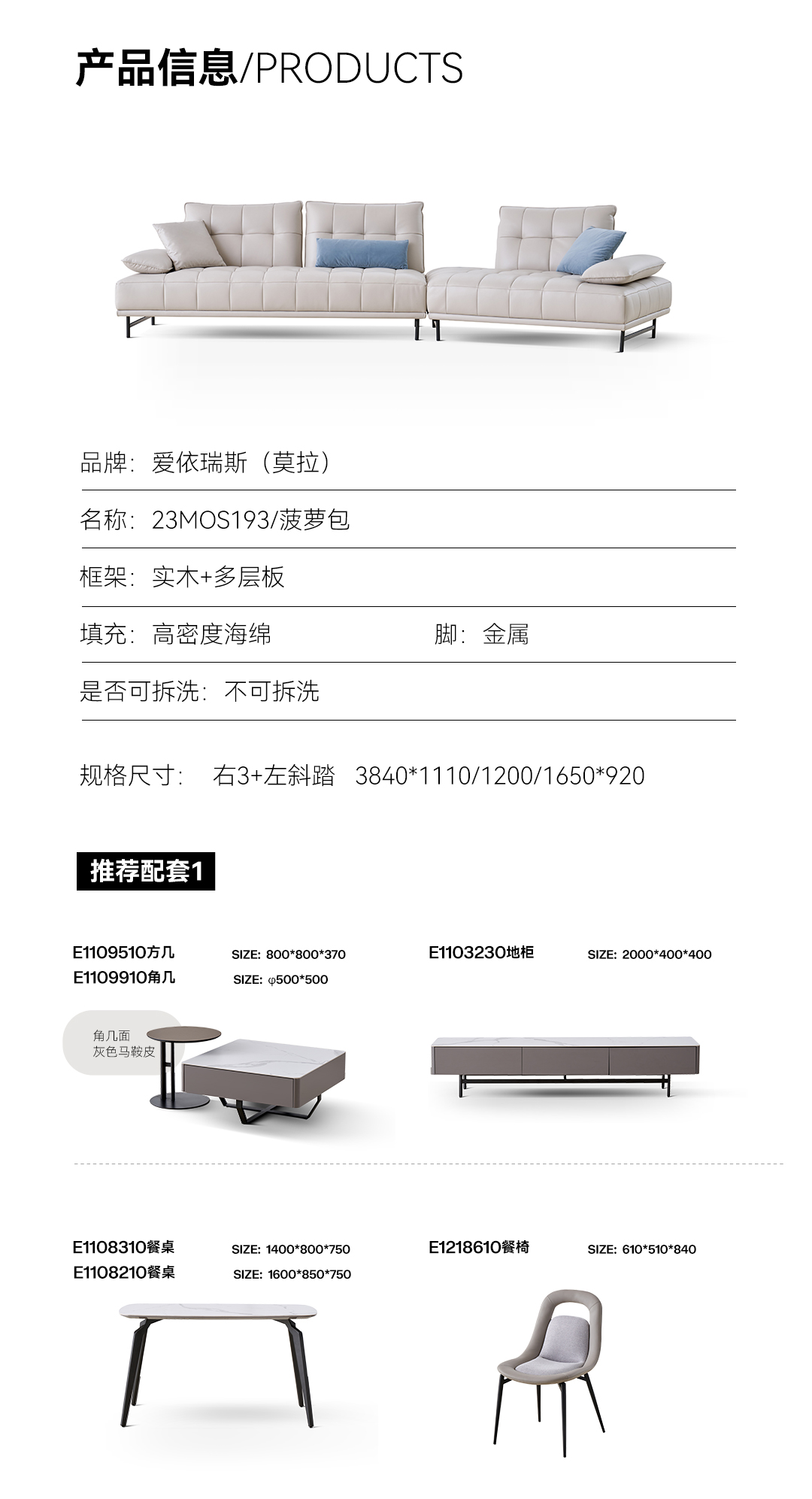 爱依瑞斯 莫拉系列沙发 23MOS193/菠萝包