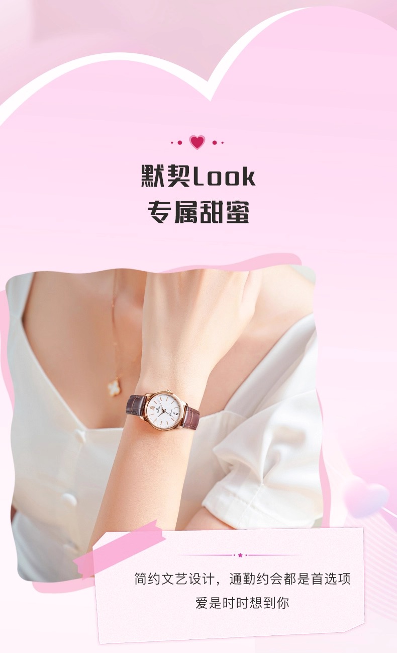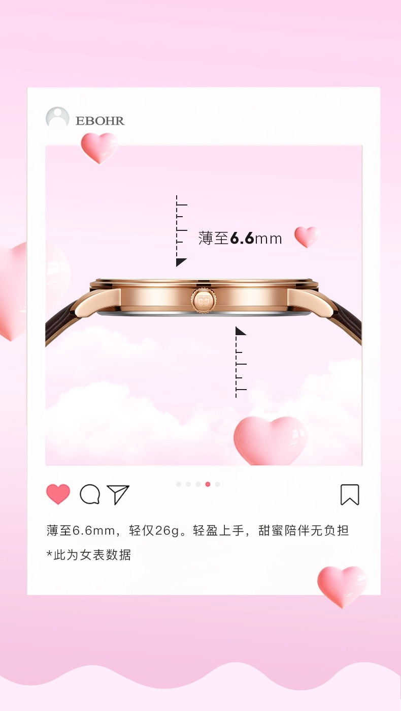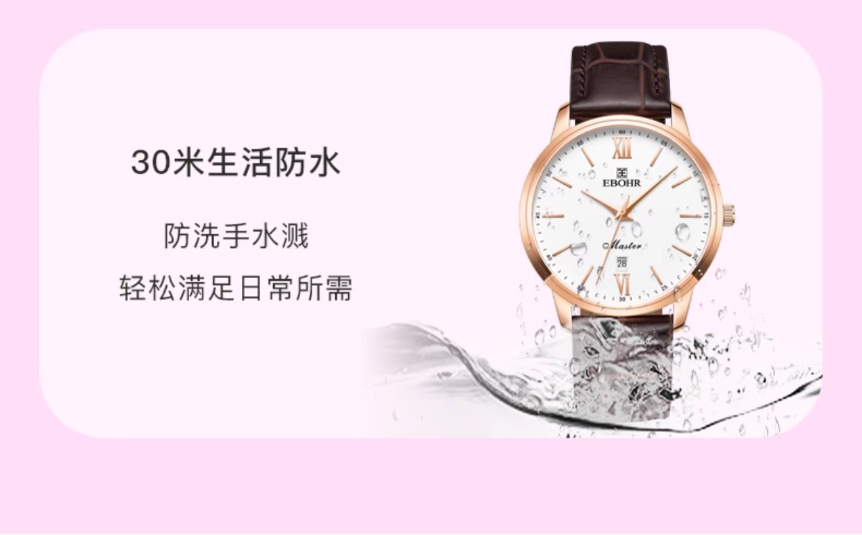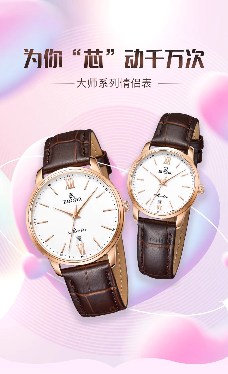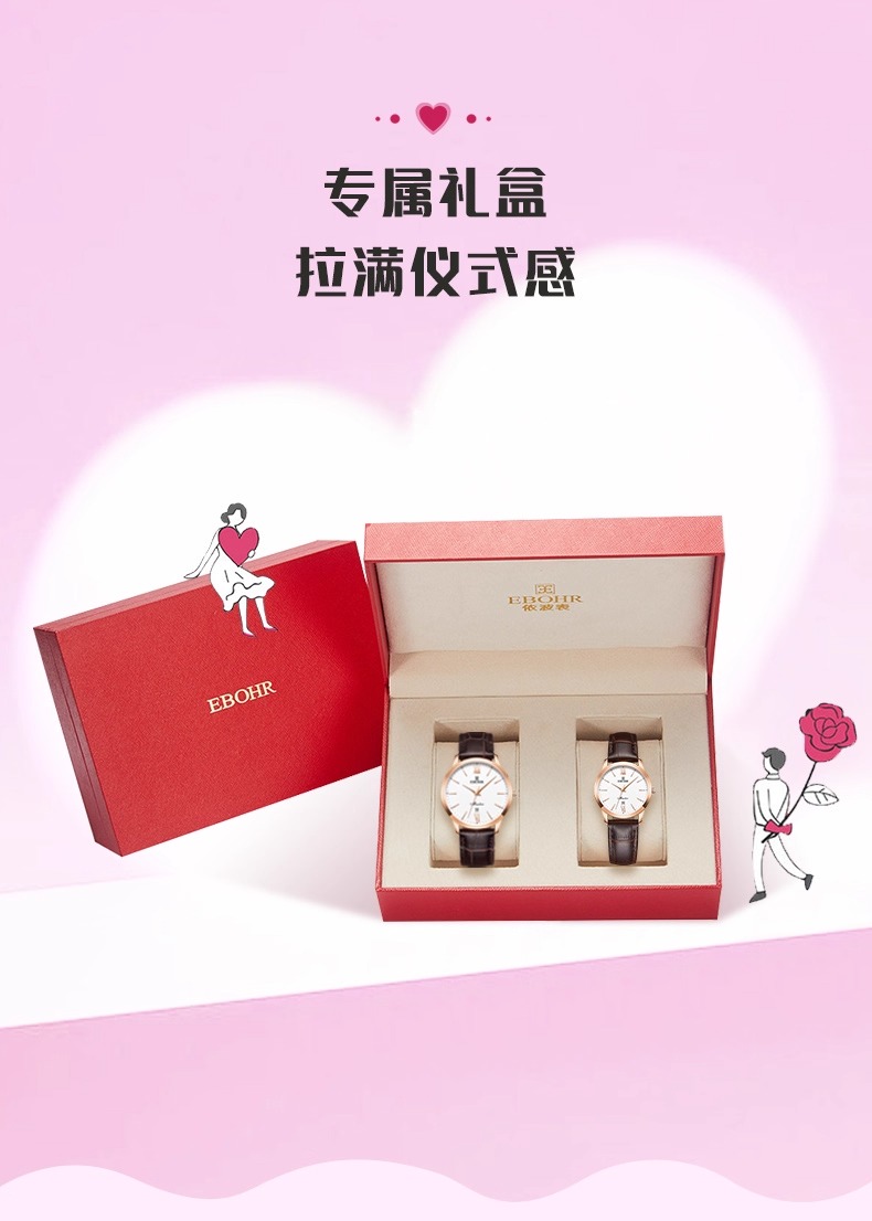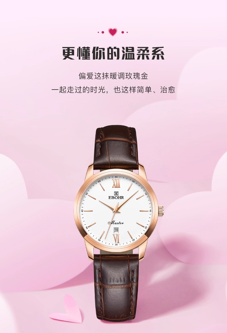 依波表EBOHR手表礼物女简约情侣石英表百搭真皮表带男士手表5186