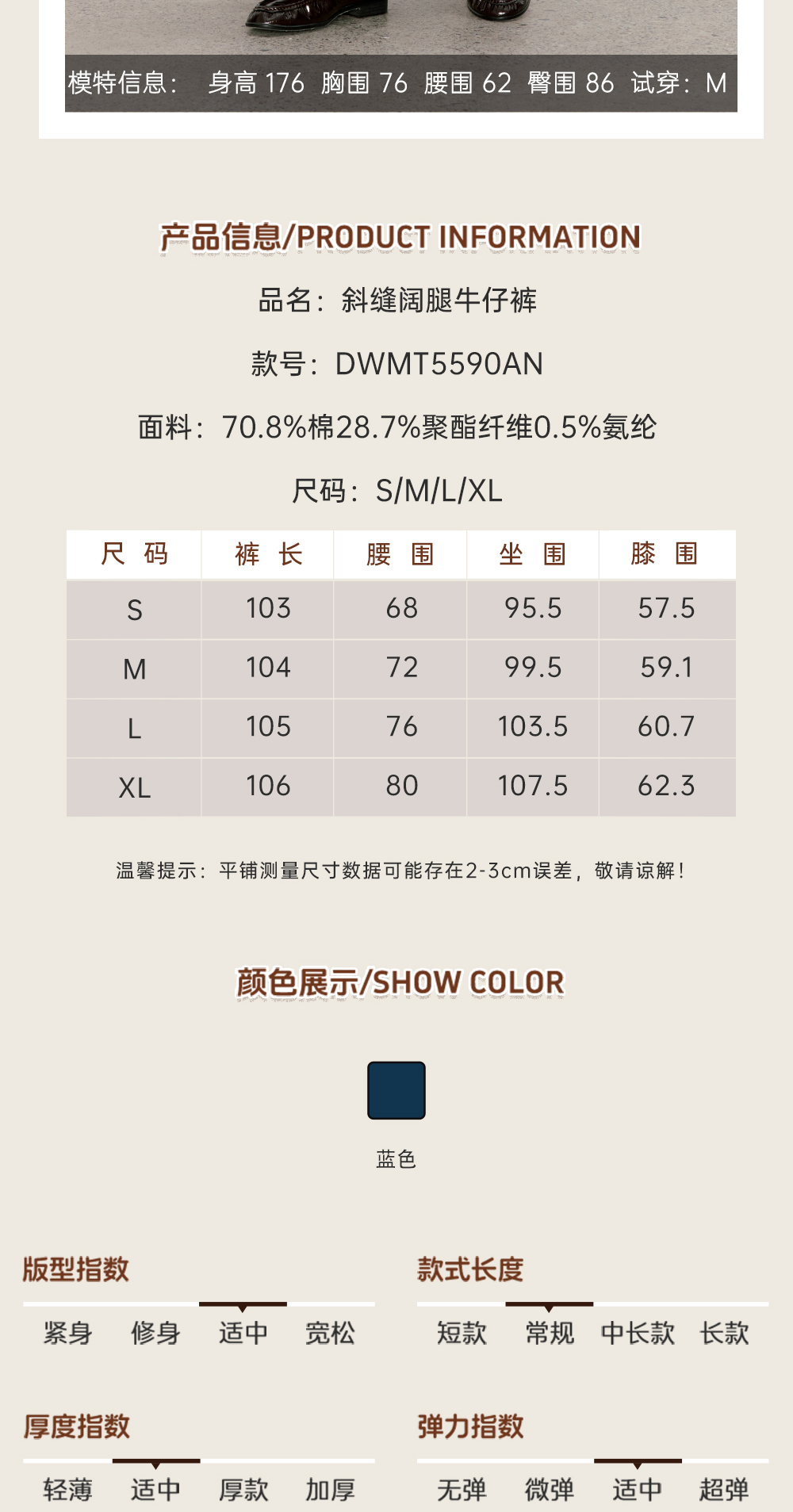 东黎 • 我不被驯化 斜缝阔腿牛仔裤 5590