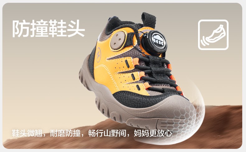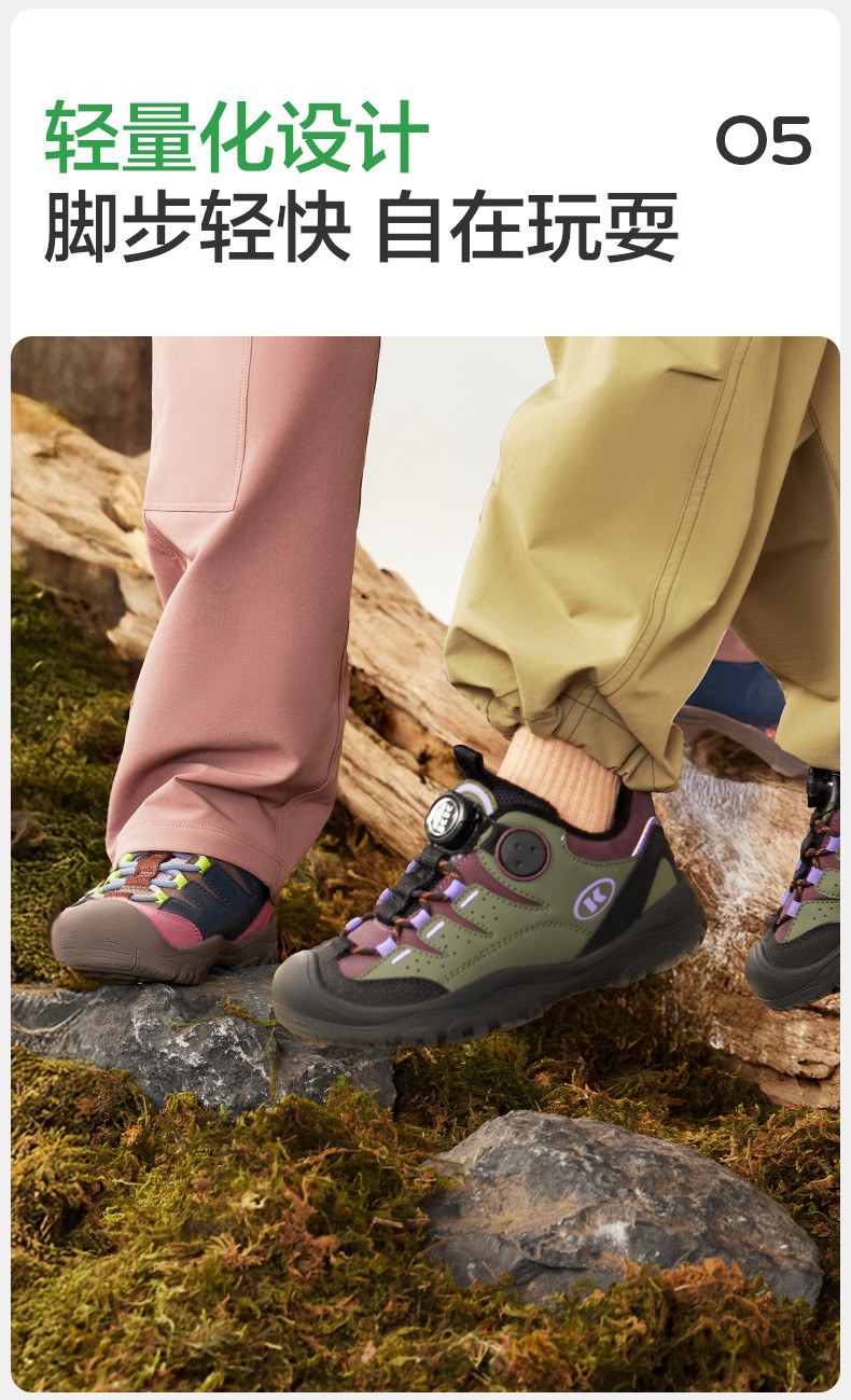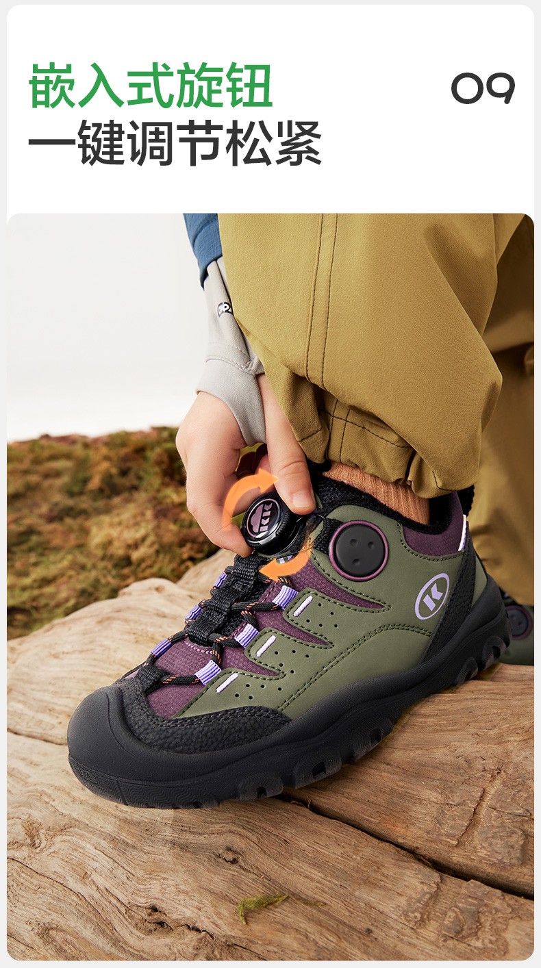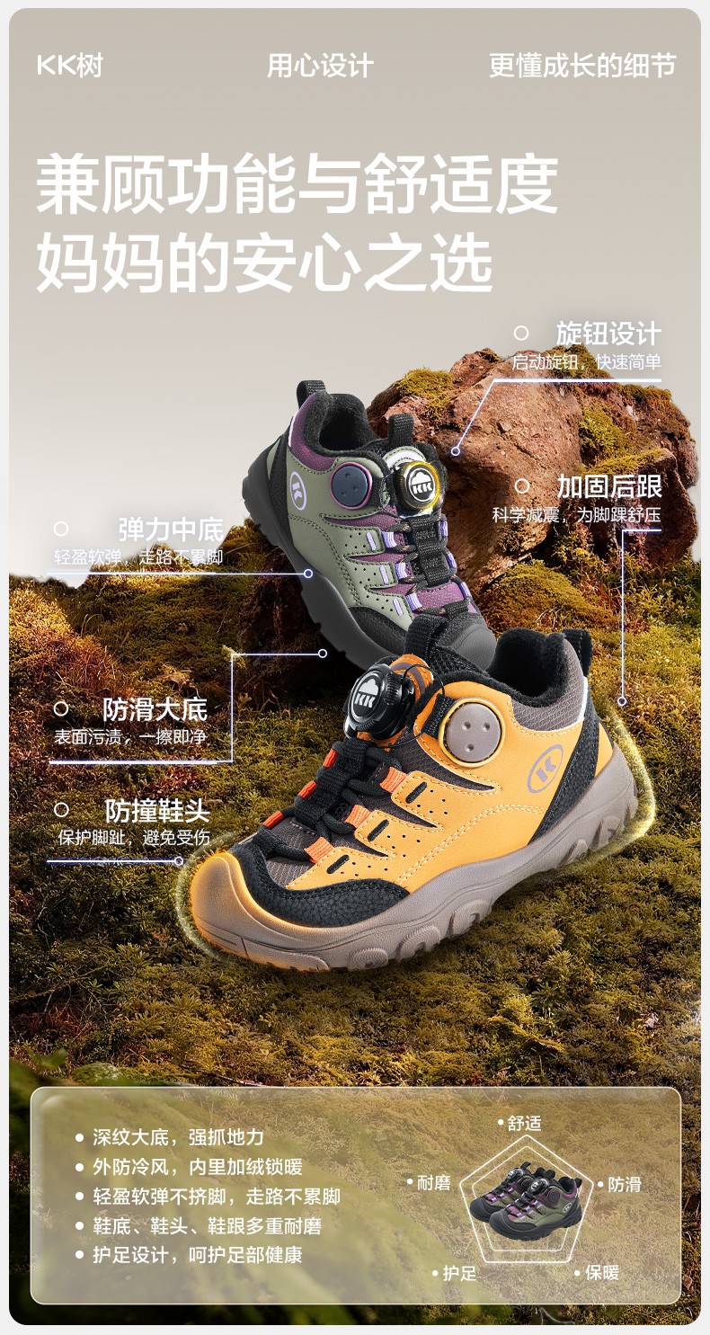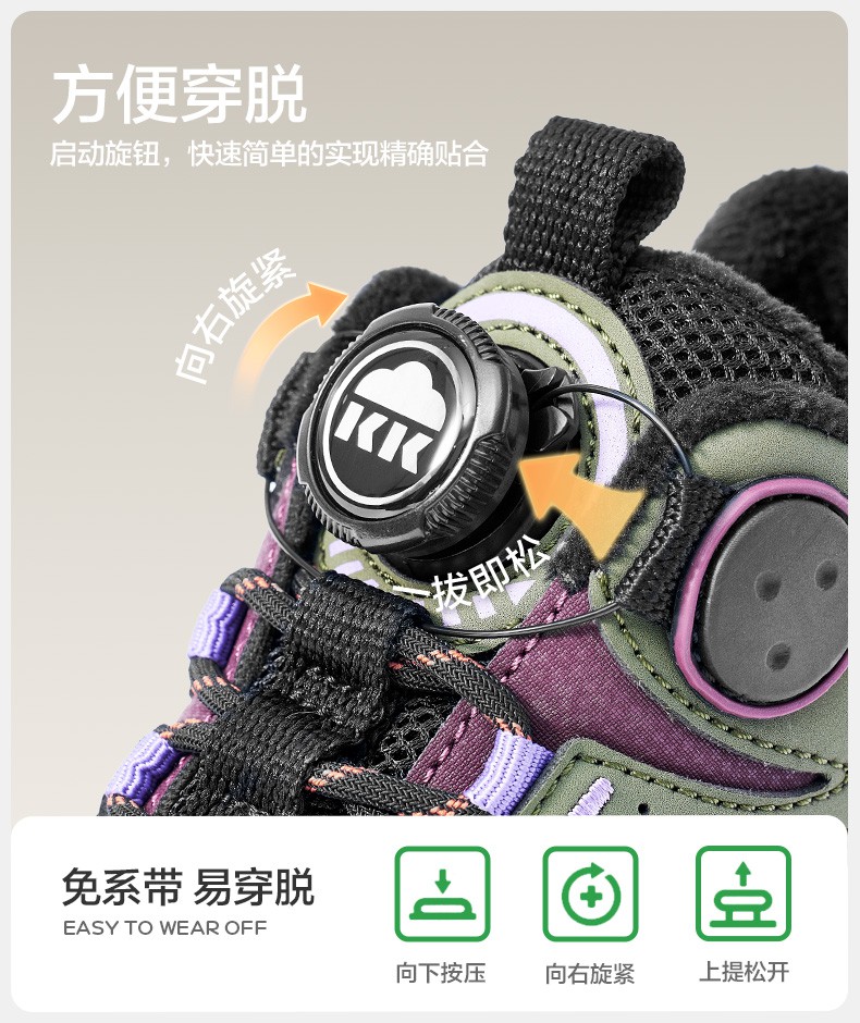 KK树儿童运动鞋旋钮扣男童女孩防风保暖登山鞋防滑耐磨轻盈好穿脱小曲奇户外运动鞋