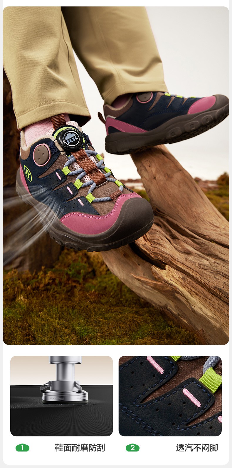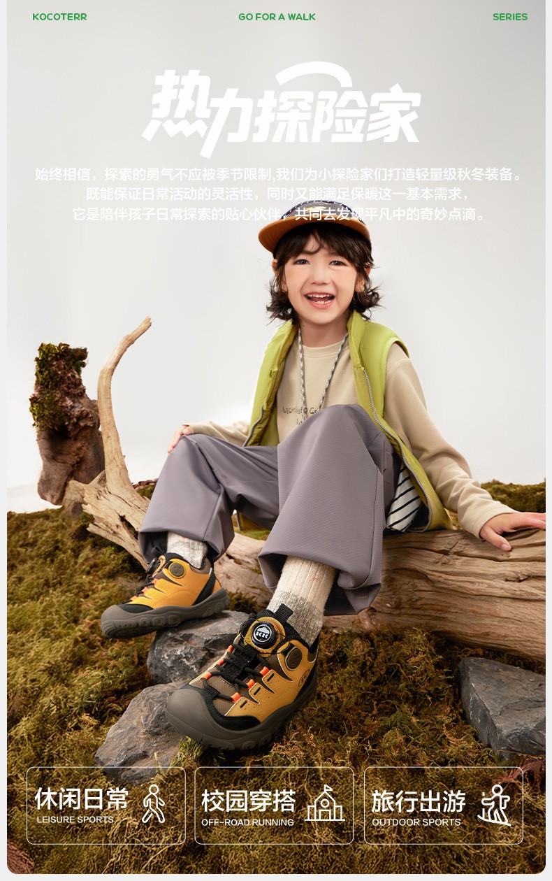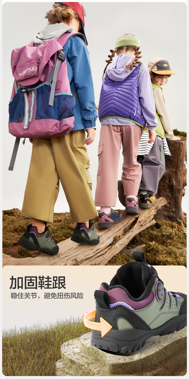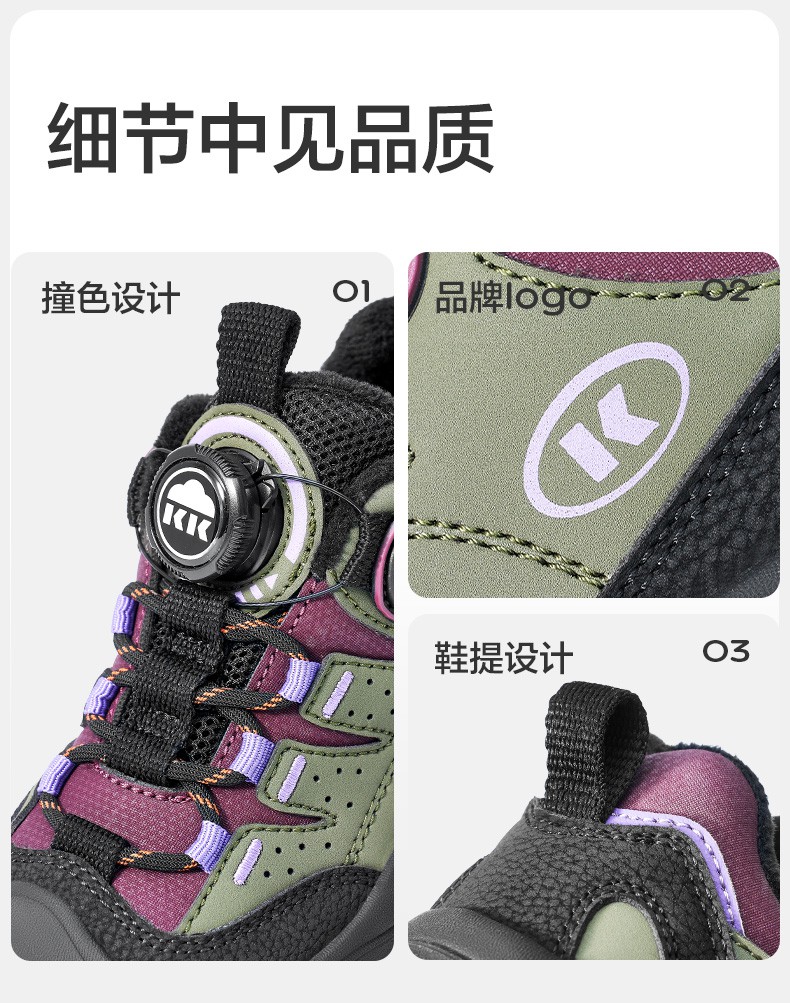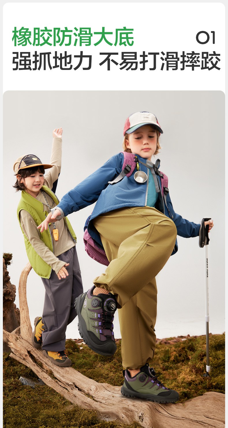 KK树儿童运动鞋旋钮扣男童女孩防风保暖登山鞋防滑耐磨轻盈好穿脱小曲奇户外运动鞋