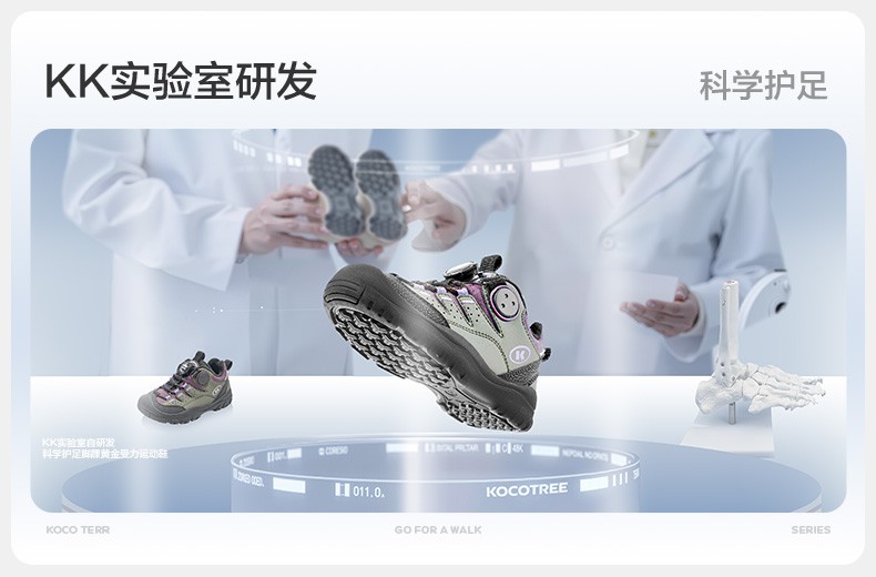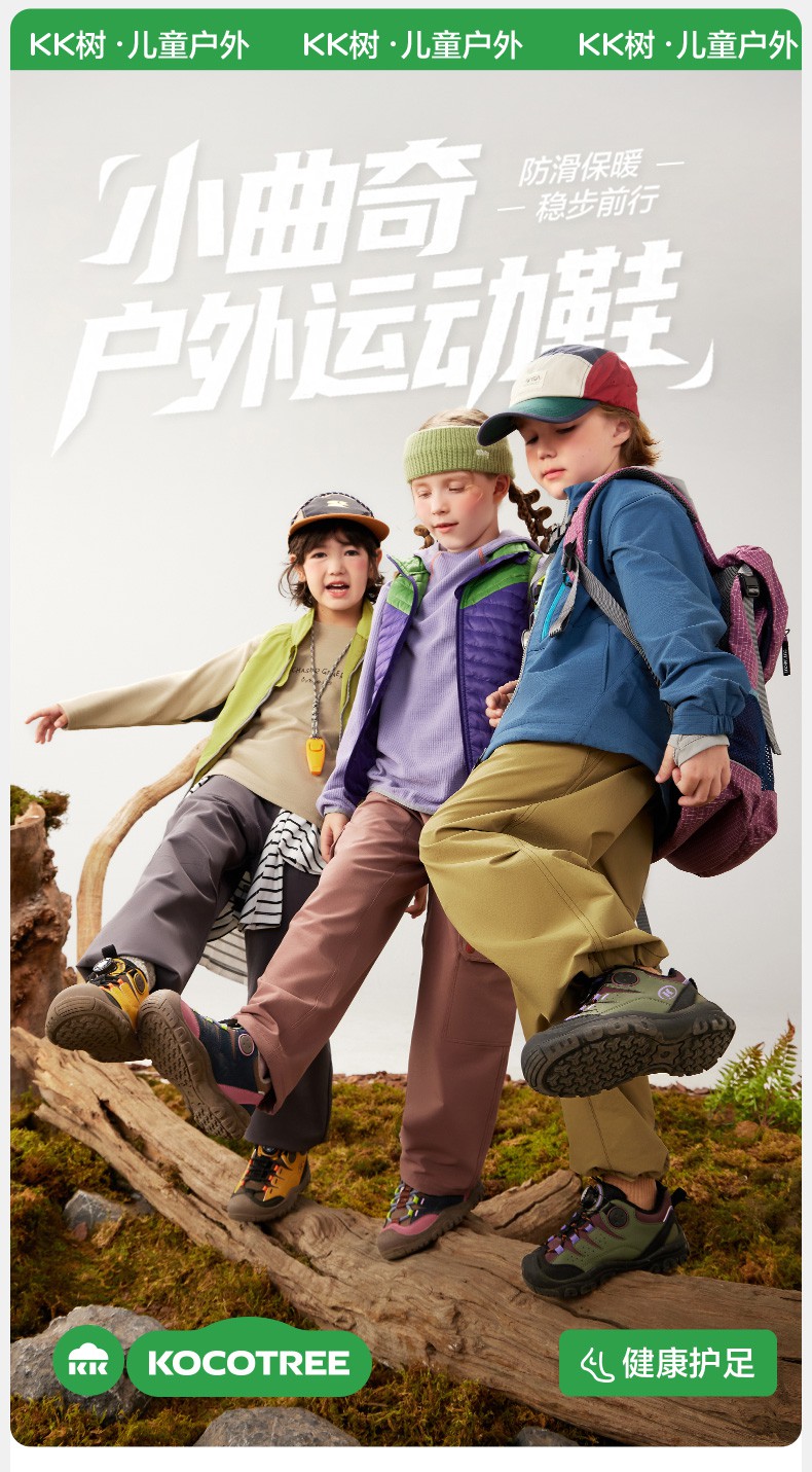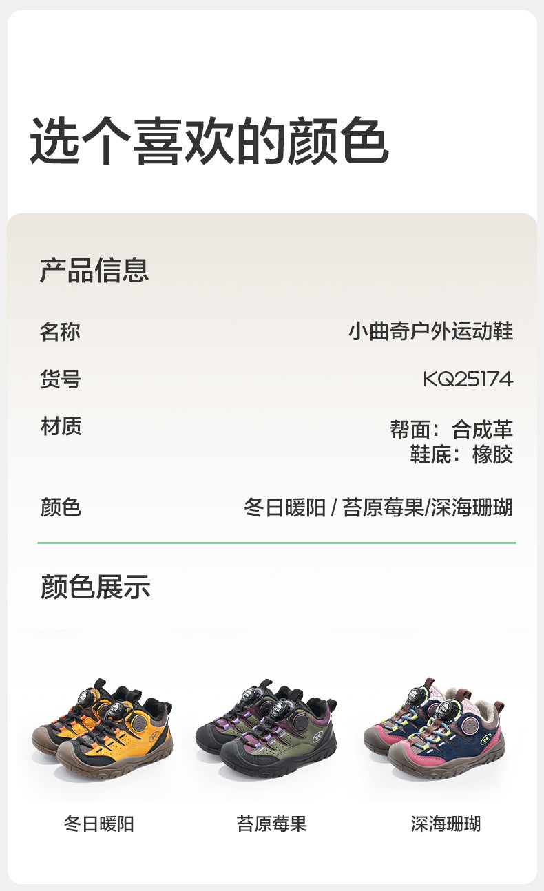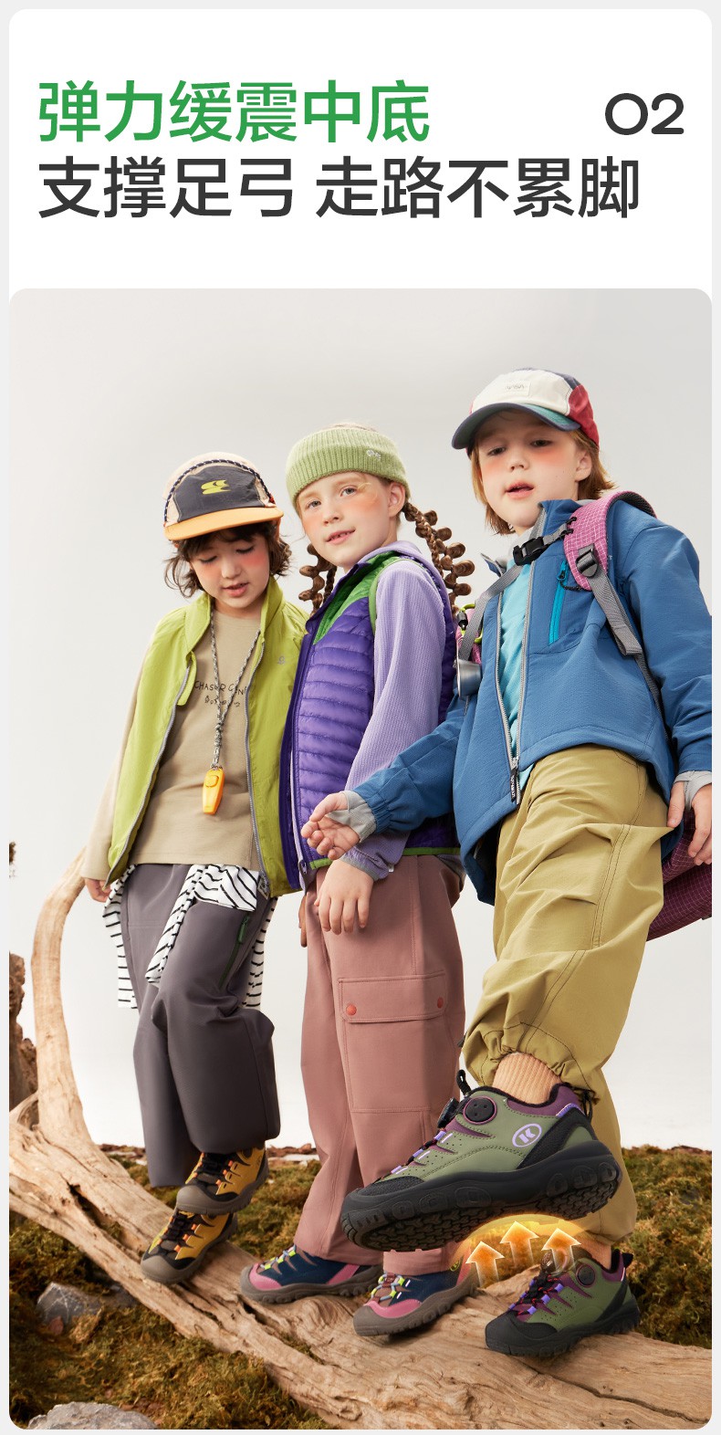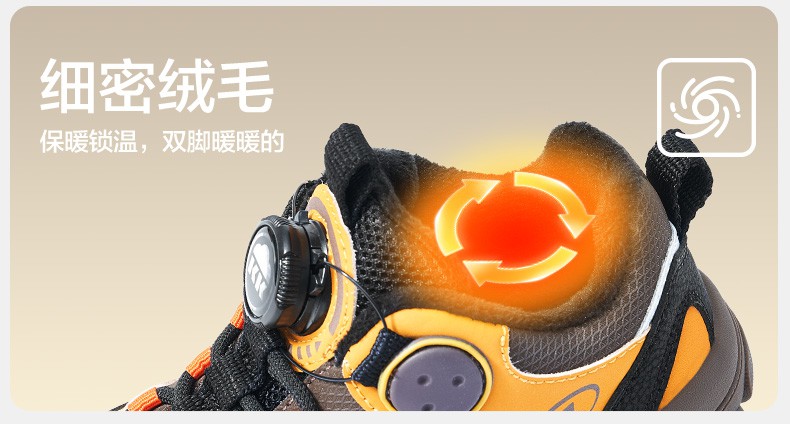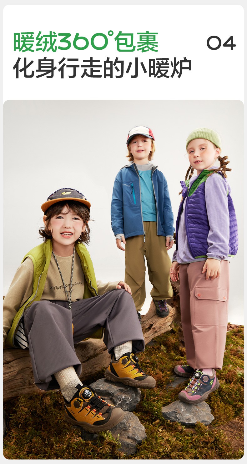 KK树儿童运动鞋旋钮扣男童女孩防风保暖登山鞋防滑耐磨轻盈好穿脱小曲奇户外运动鞋
