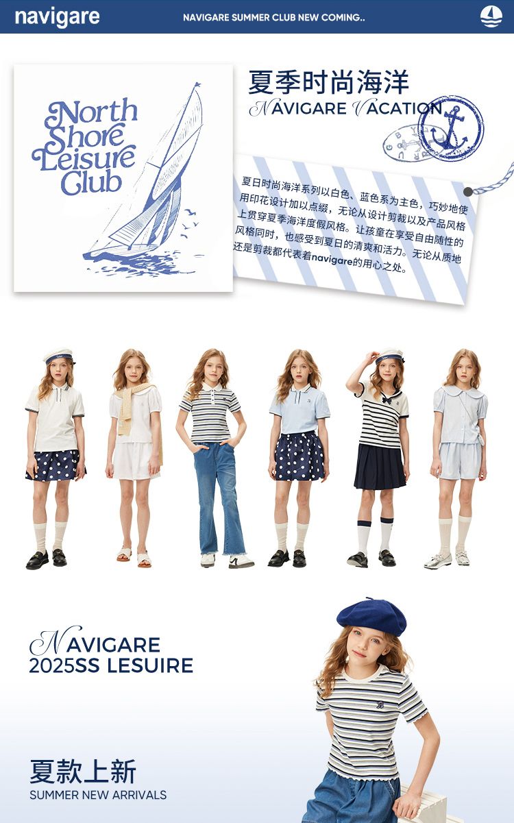 【纳维凯尔】【120-165】意大利小帆船女童长袖T恤纯色打底衫