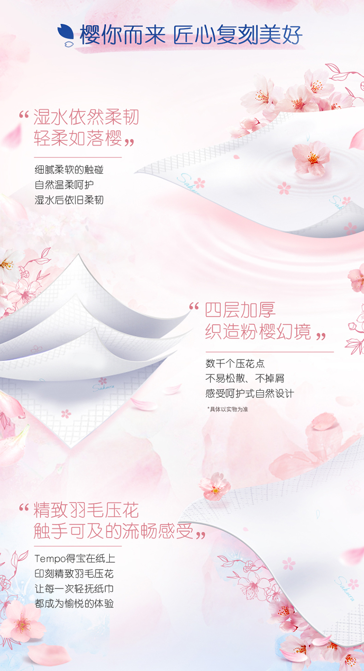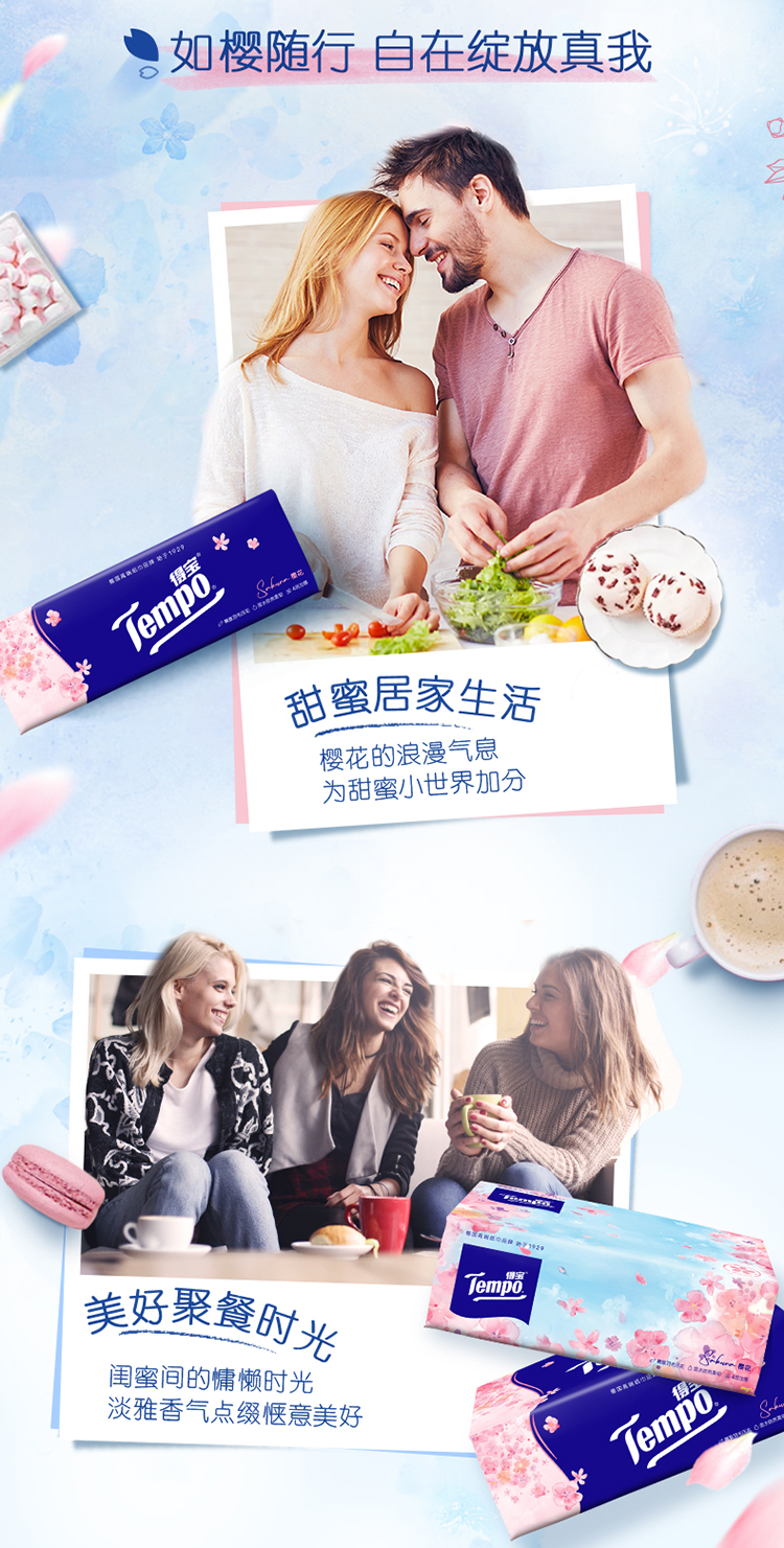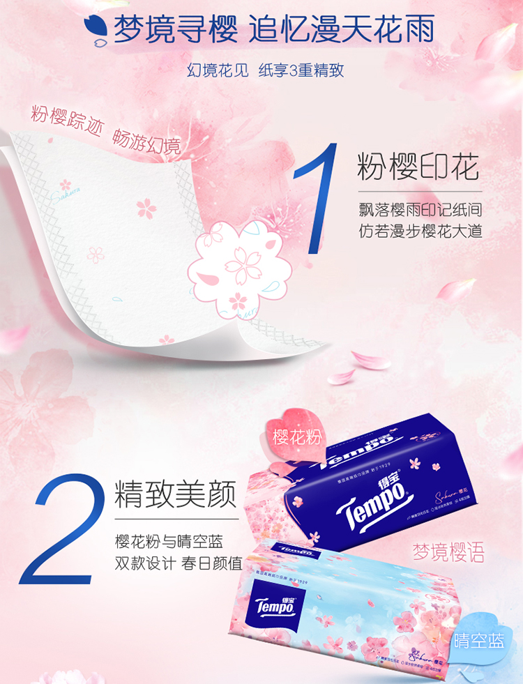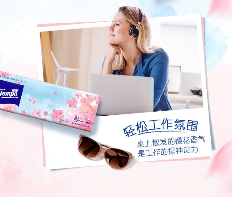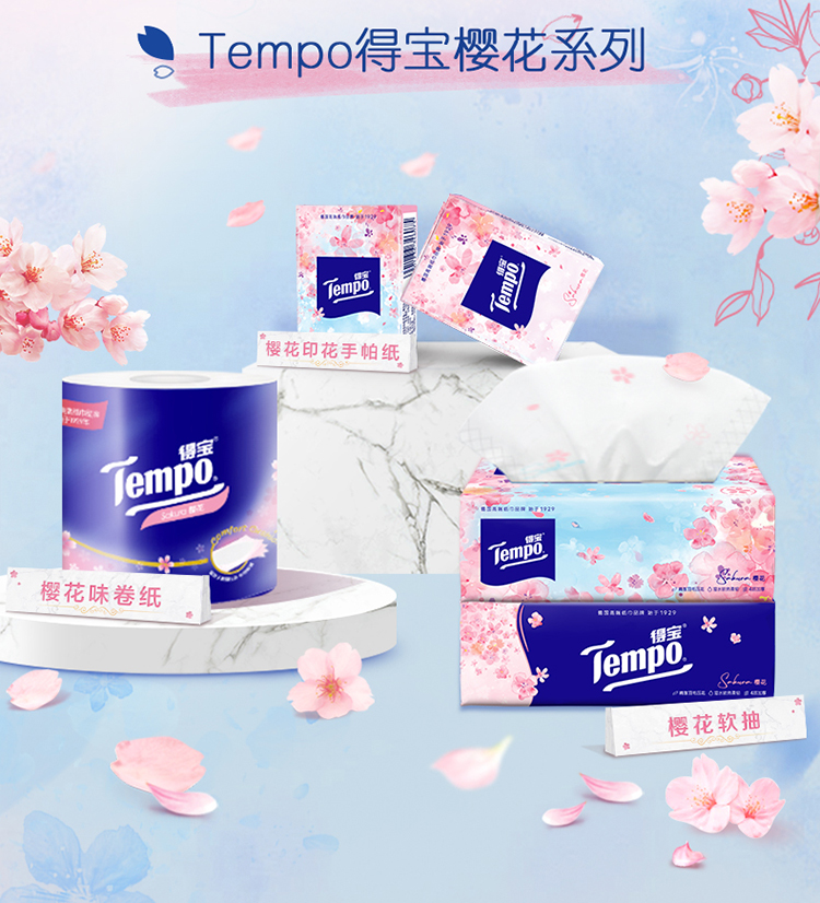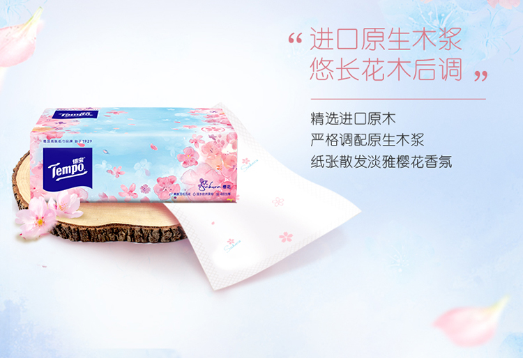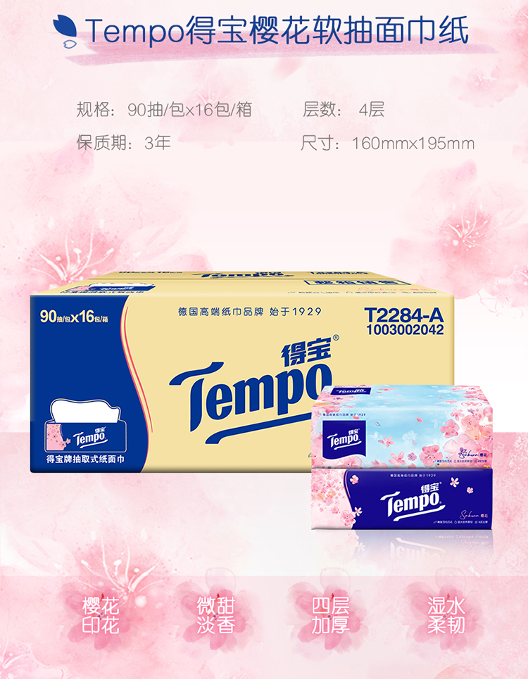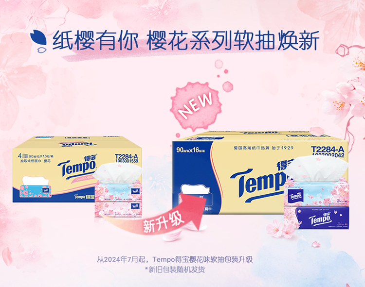 得宝(Tempo) 软抽纸巾樱花香味4层90抽16包整箱装纸巾(新旧款随机发)