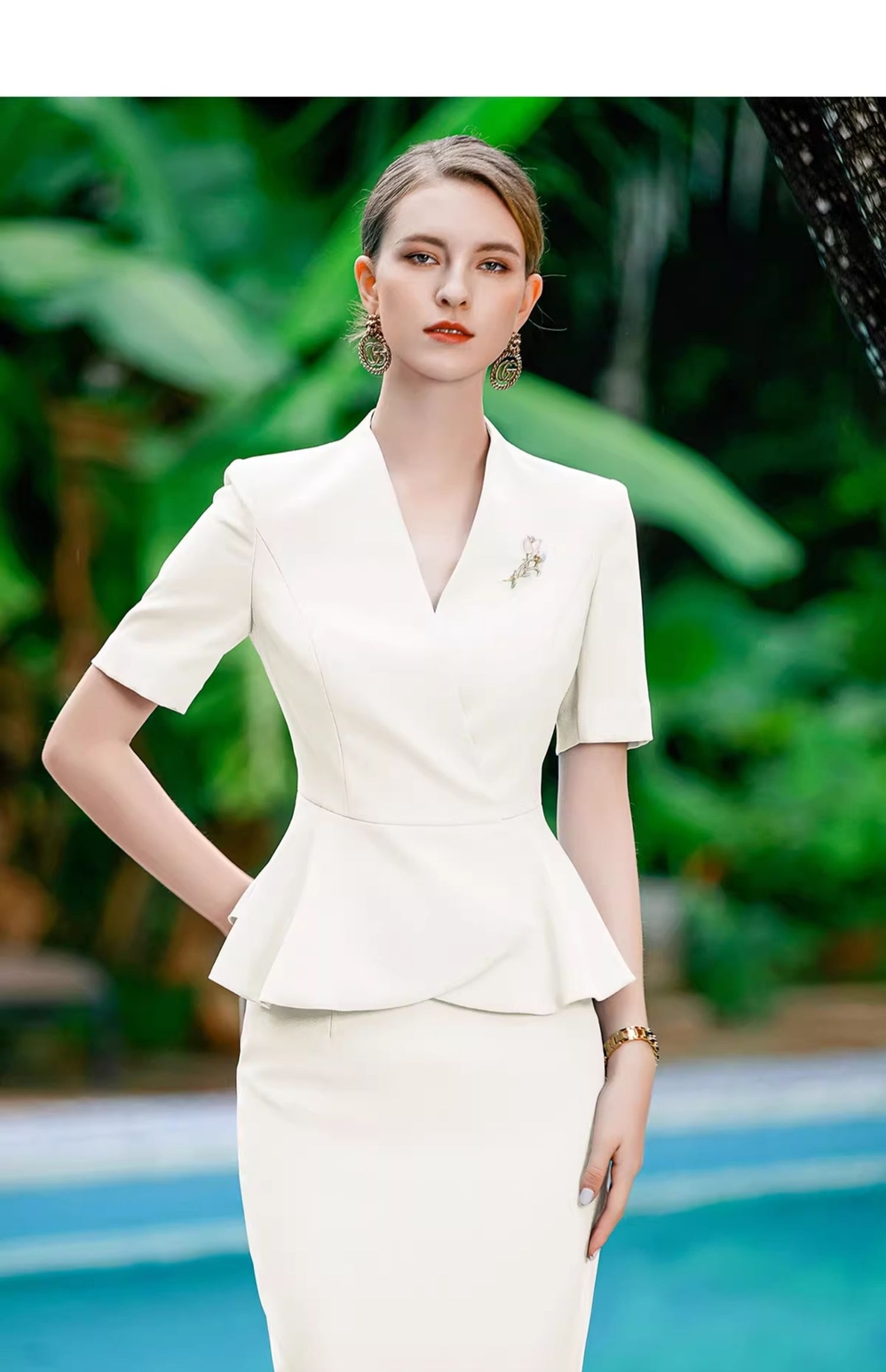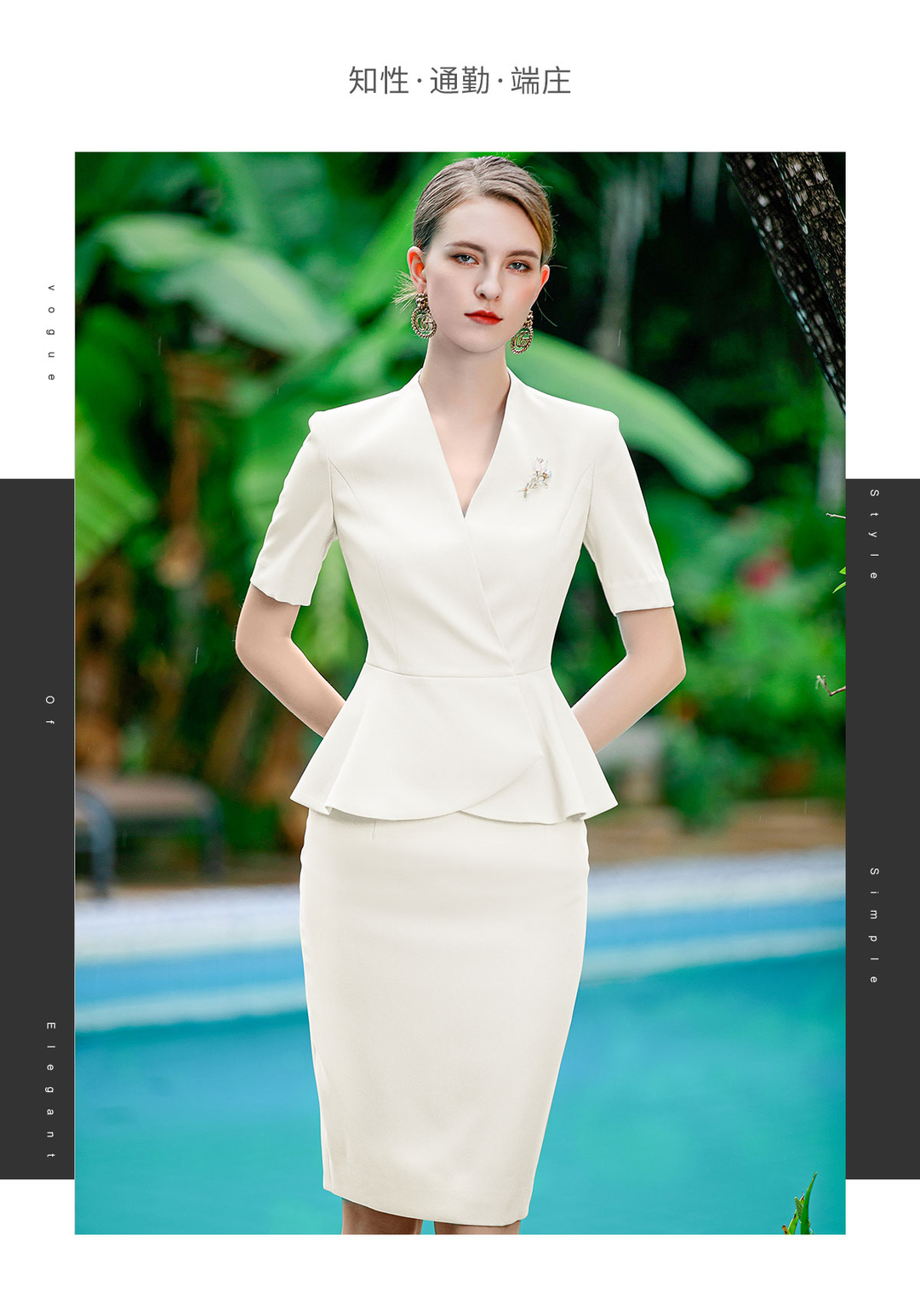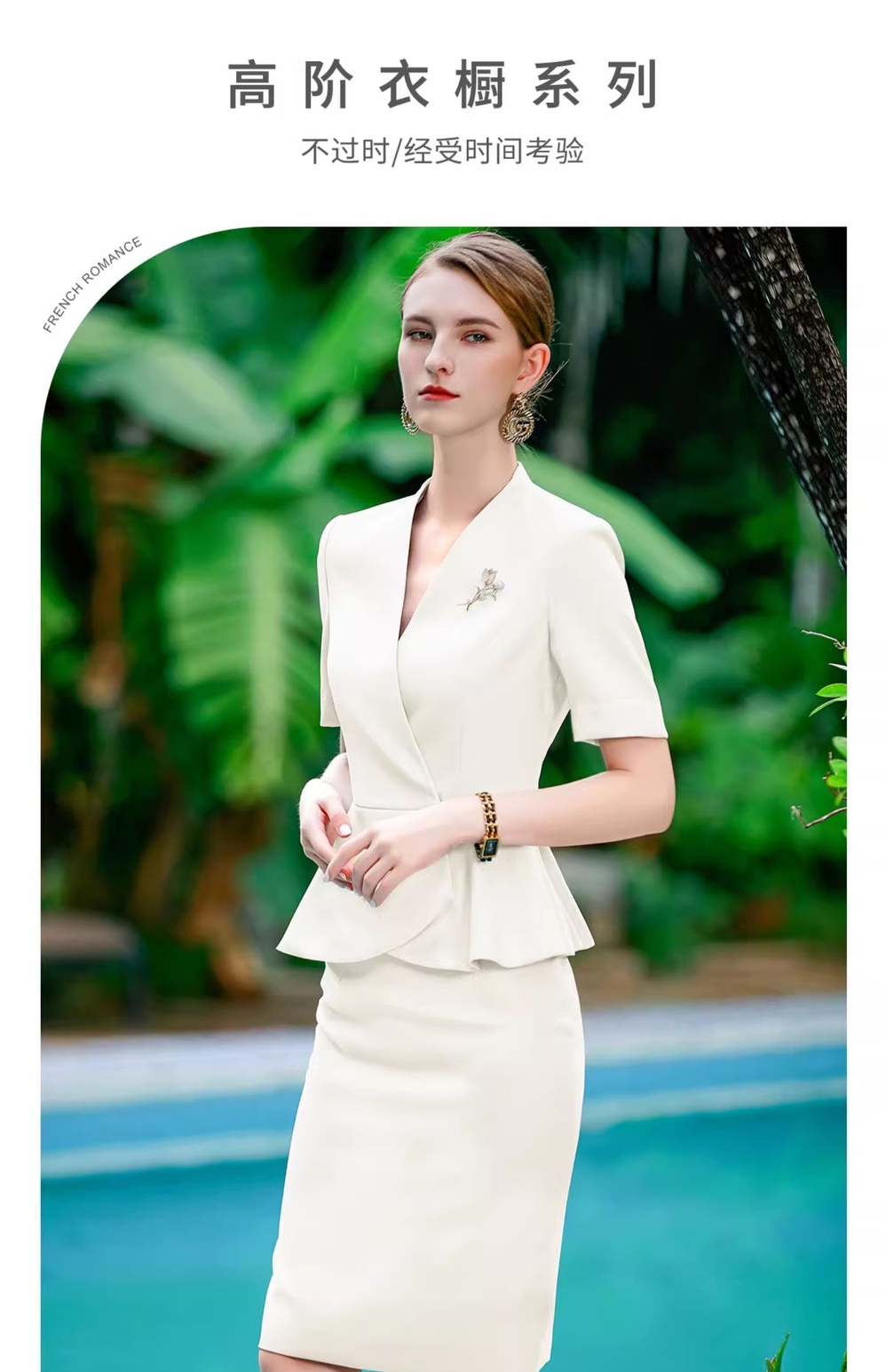 IWY/气质米白色西装套裙女短袖主持演讲正装美容院职业裙时尚通勤CS1756