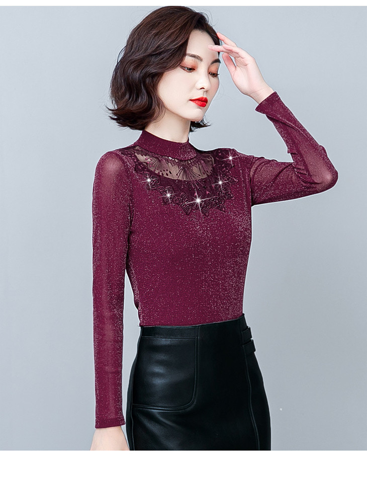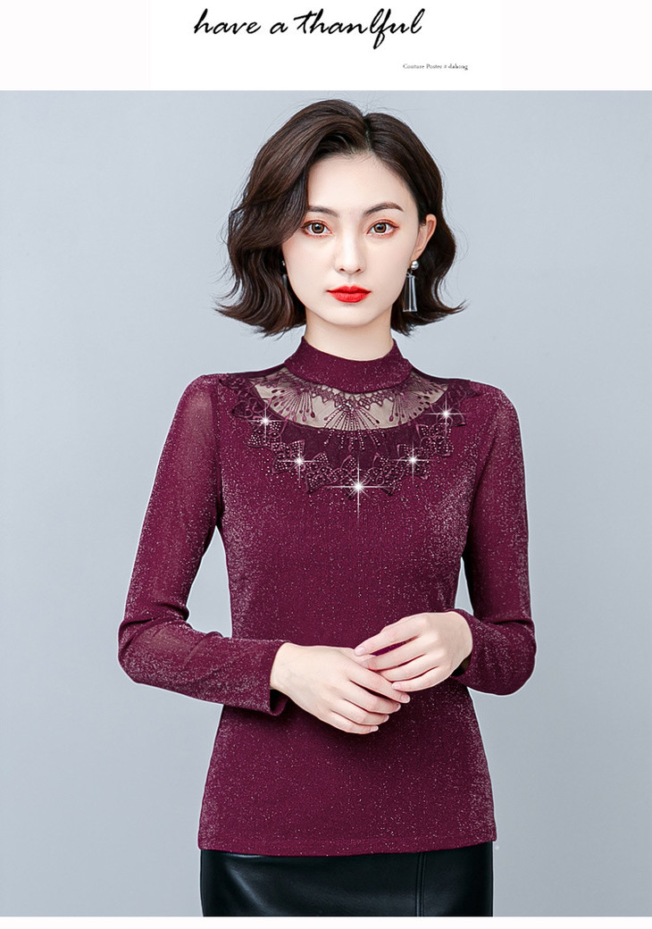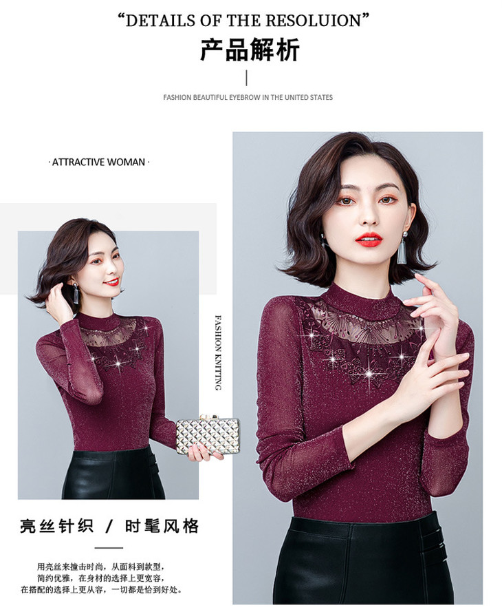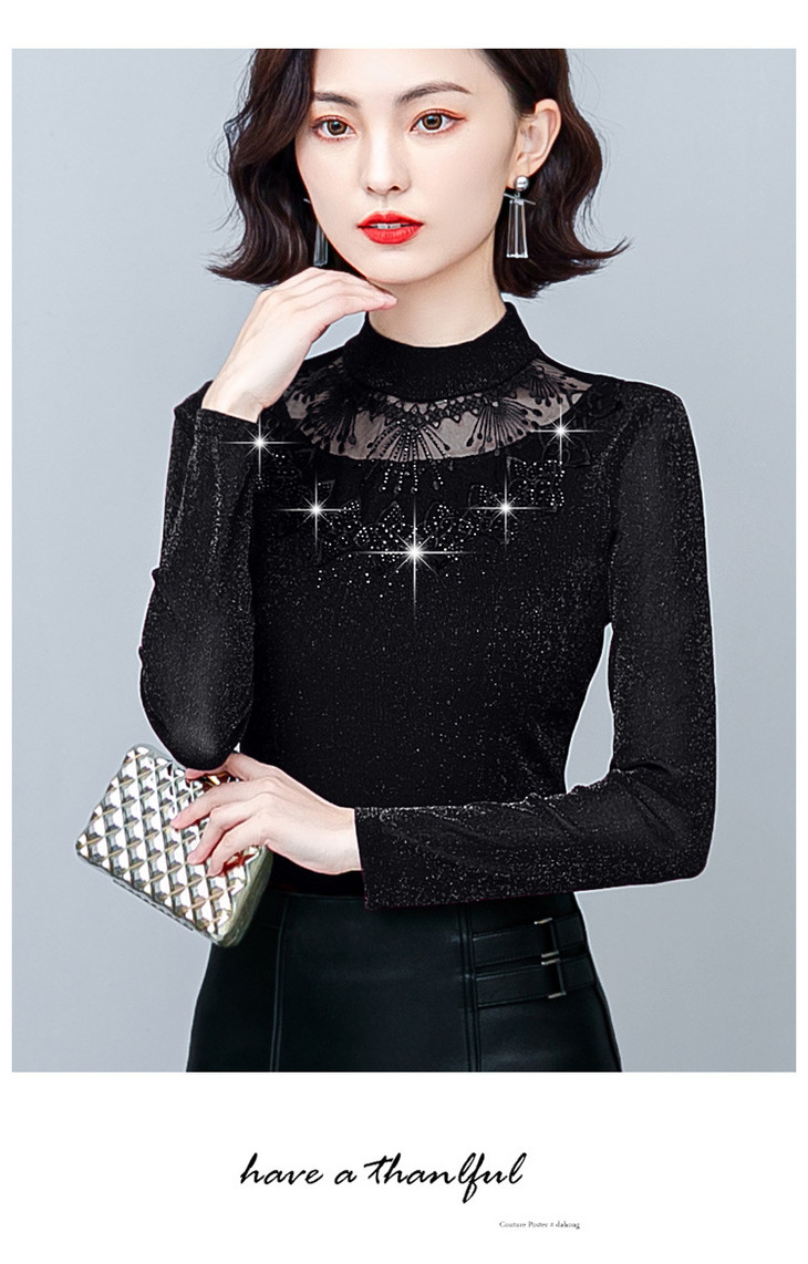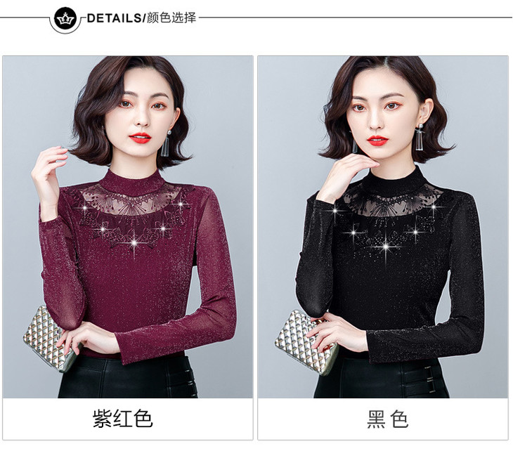 新款时尚网纱烫钻打底衫纯色修身显瘦打底衫 KQL-E249N1696