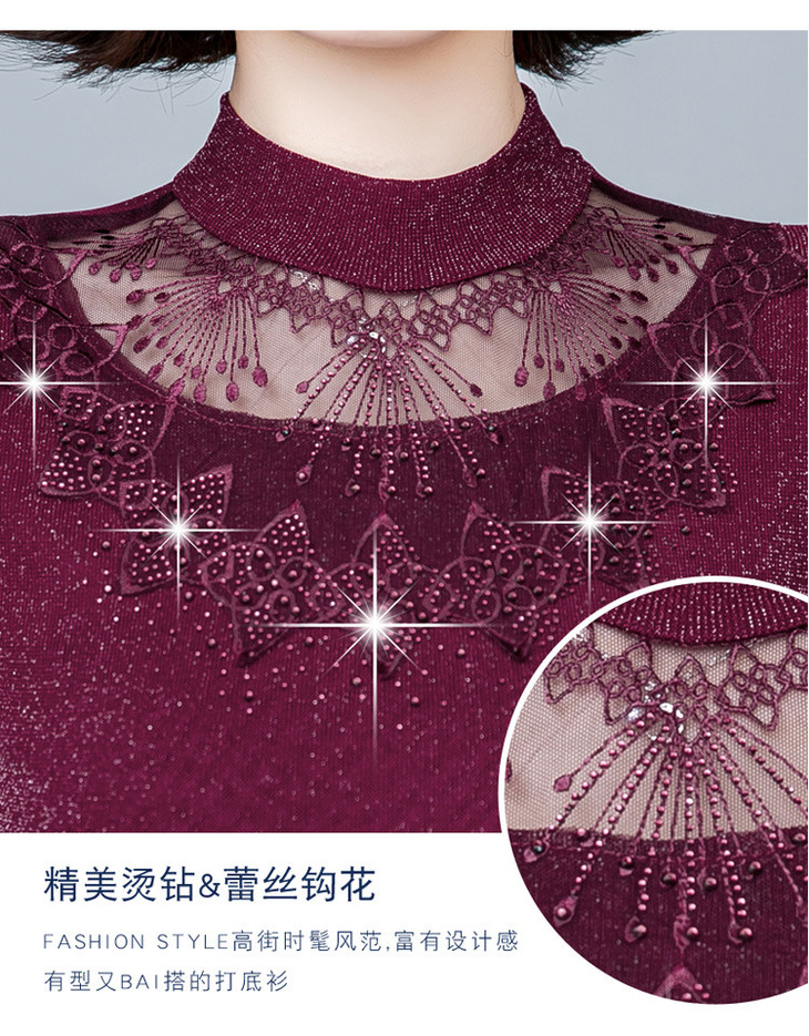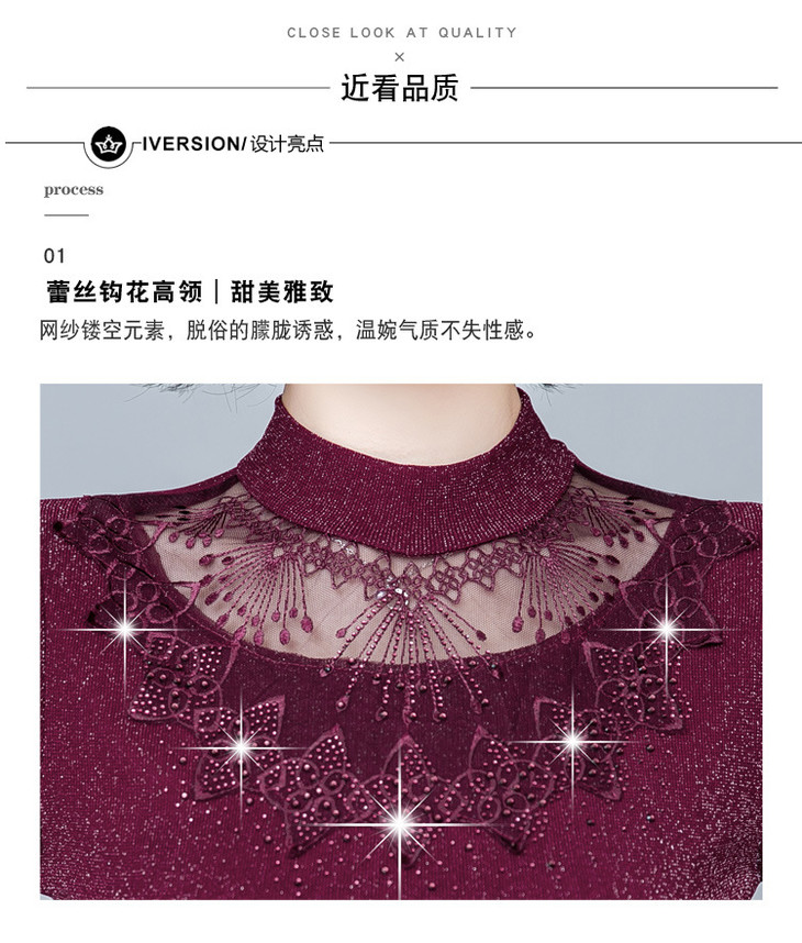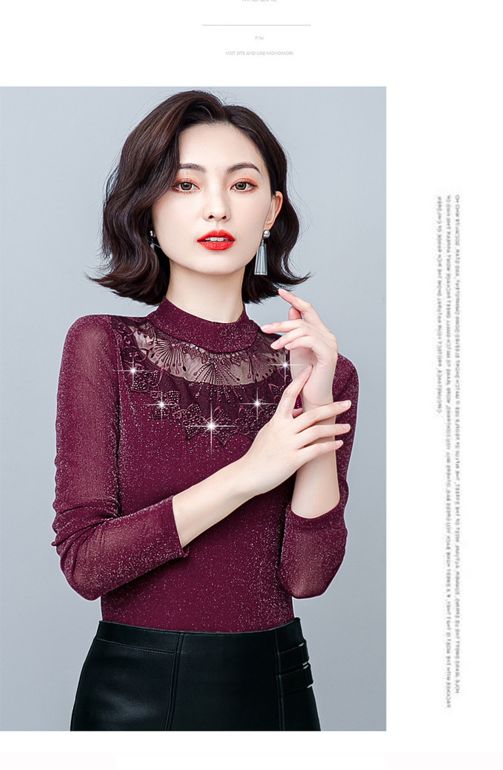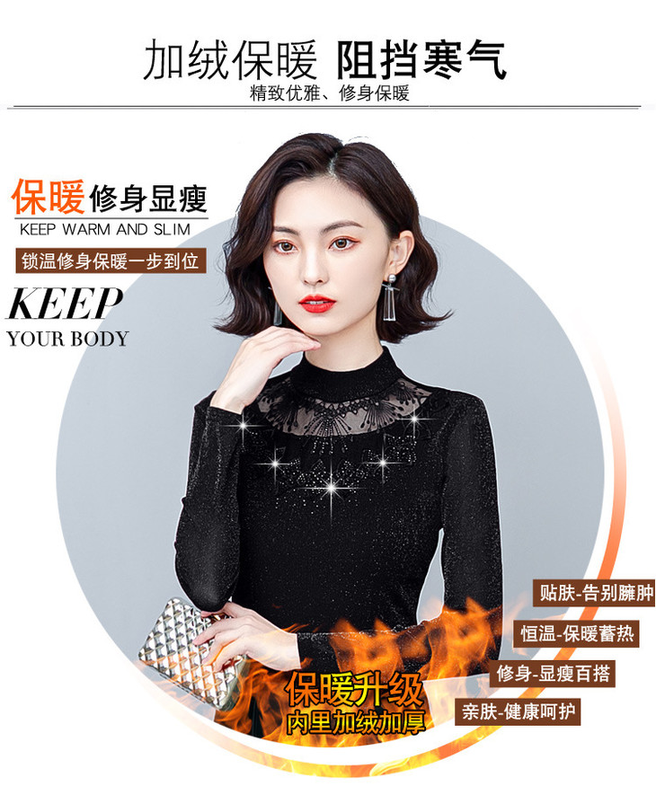 新款时尚网纱烫钻打底衫纯色修身显瘦打底衫 KQL-E249N1696