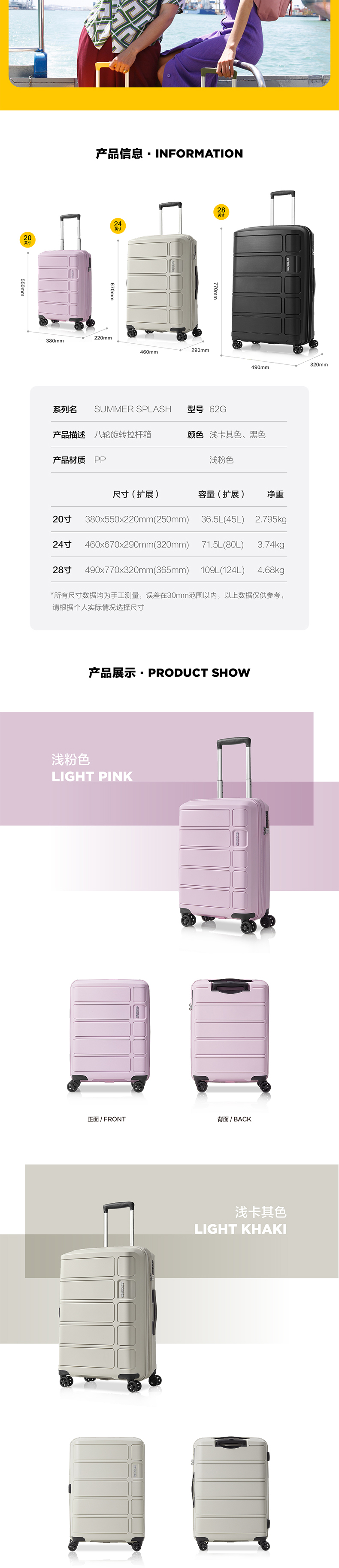 【美旅】SUMMER SPLASH系列PP材质时尚轻盈拉杆箱62G