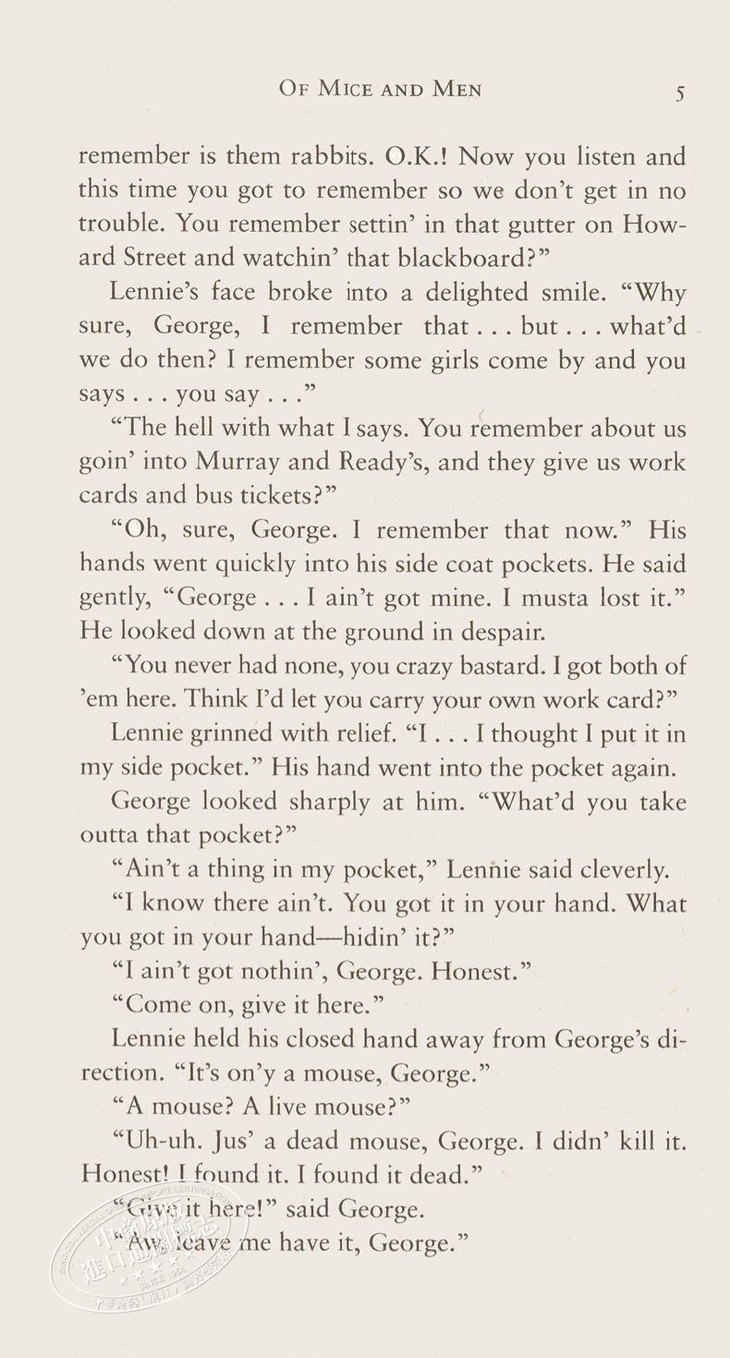 人鼠之间 英文原版 Of Mice and Men