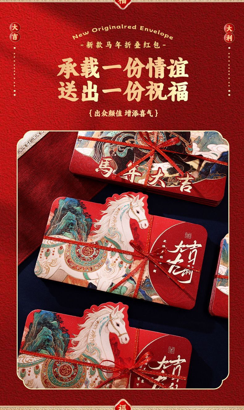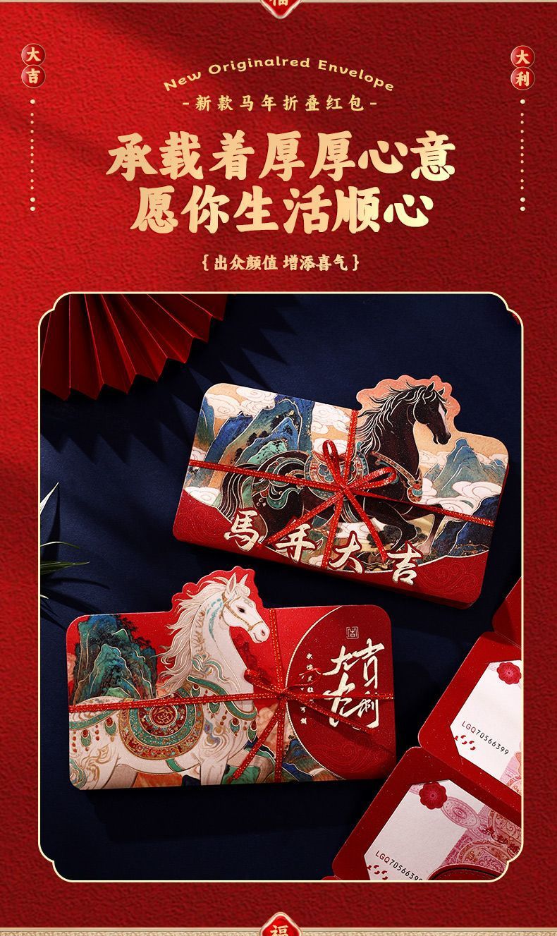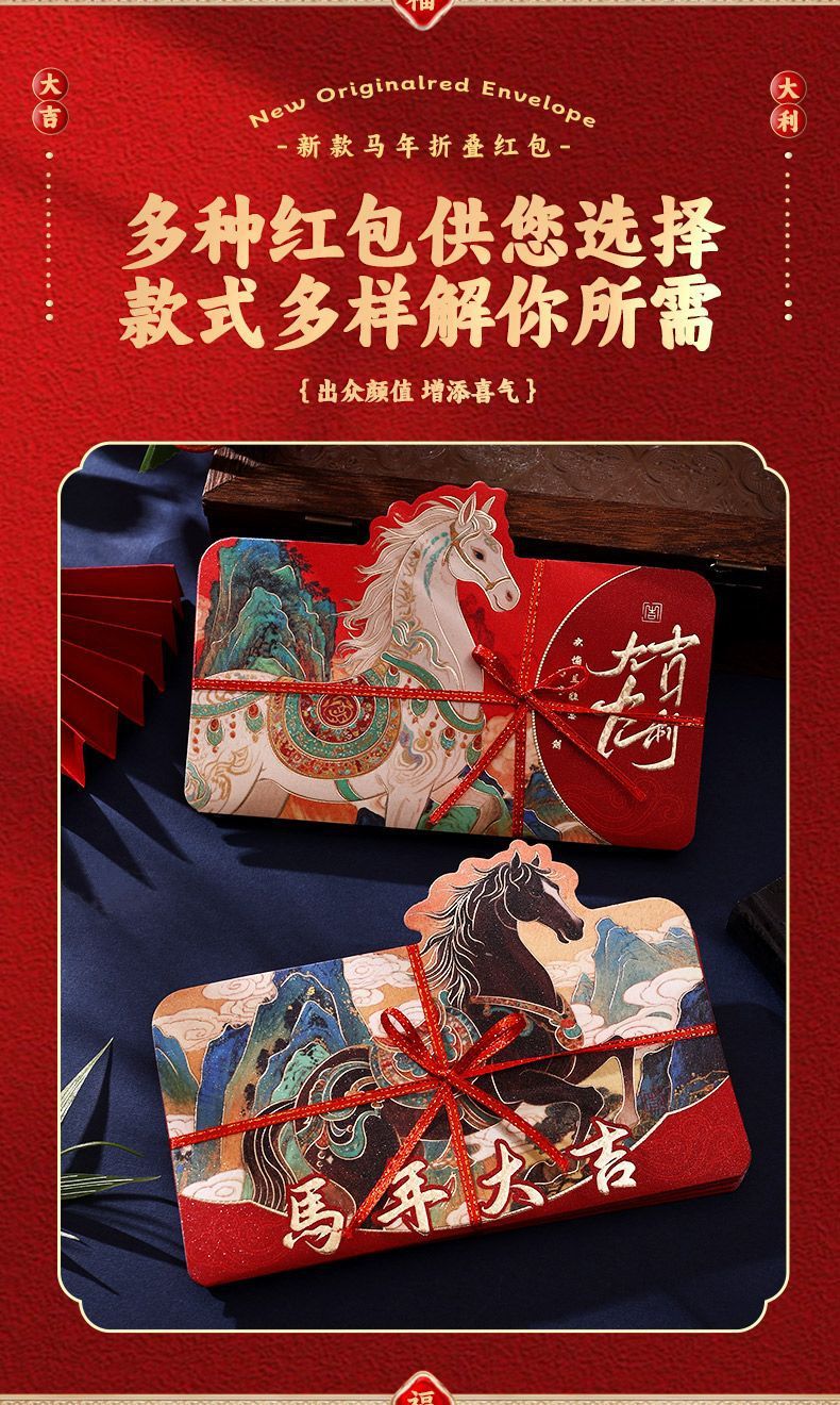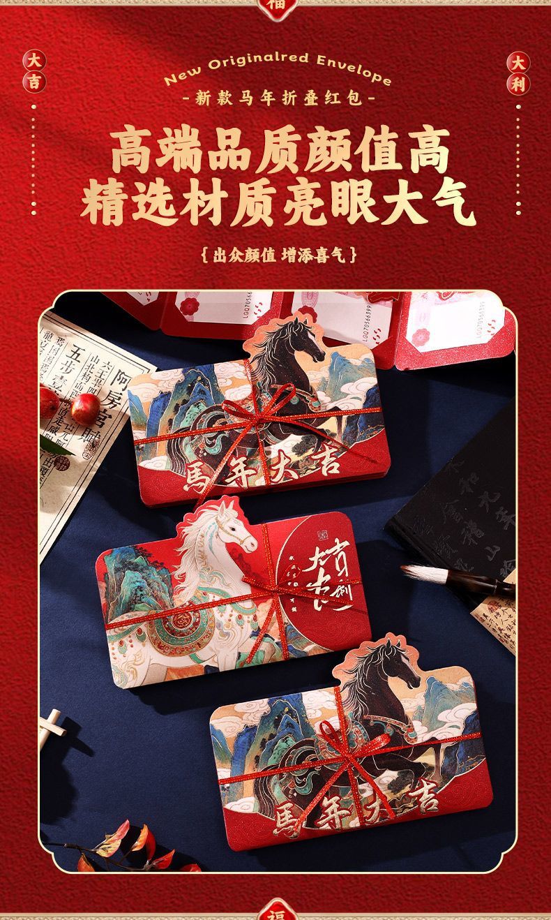 【创意新年红包❗️出众颜值增添喜气】2026马年折叠红包袋新年创意卡通利是封生肖春节过年压岁钱包。jc