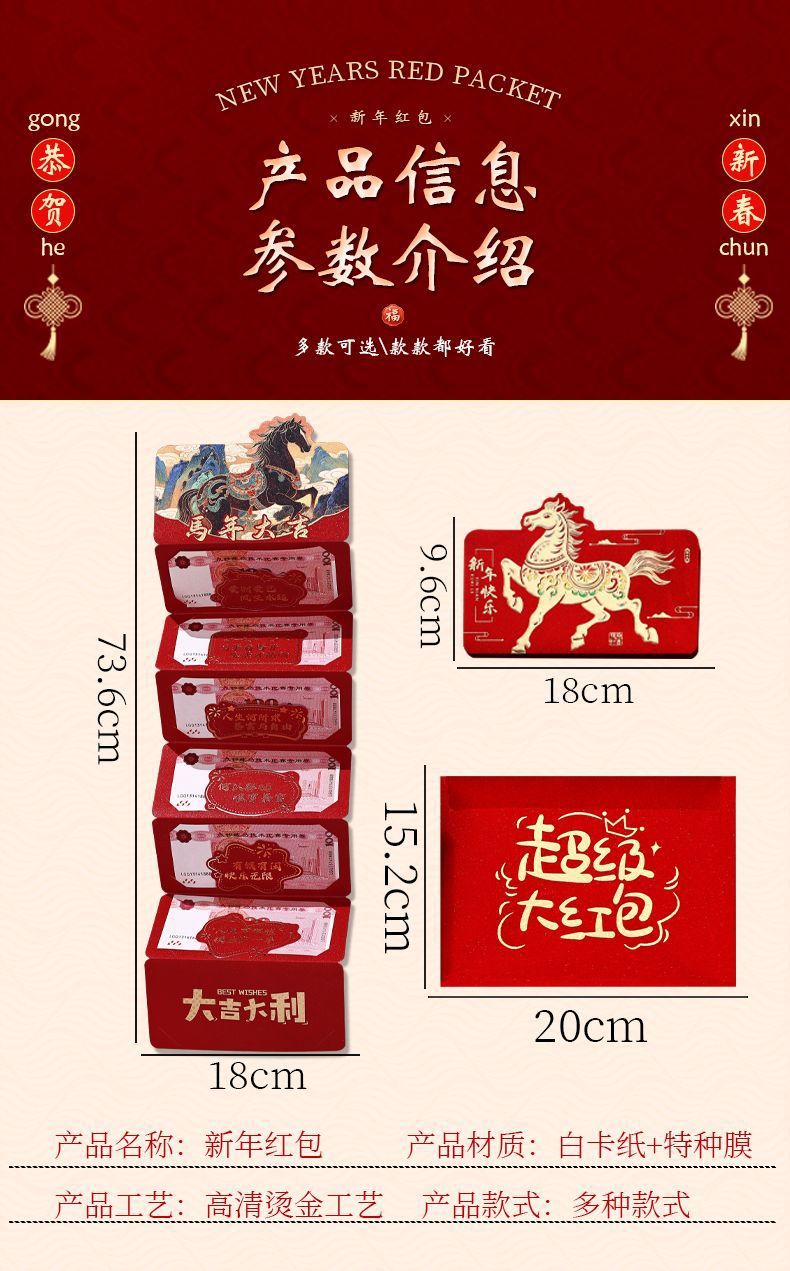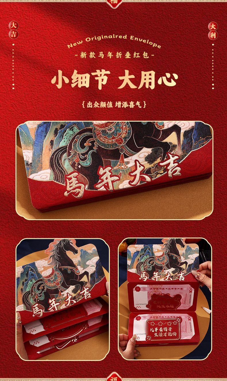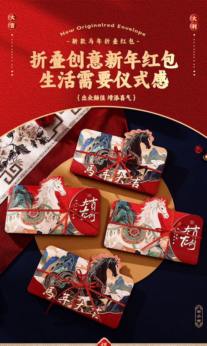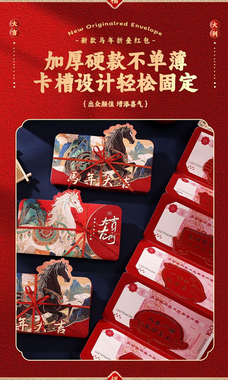 【创意新年红包❗️出众颜值增添喜气】2026马年折叠红包袋新年创意卡通利是封生肖春节过年压岁钱包。jc