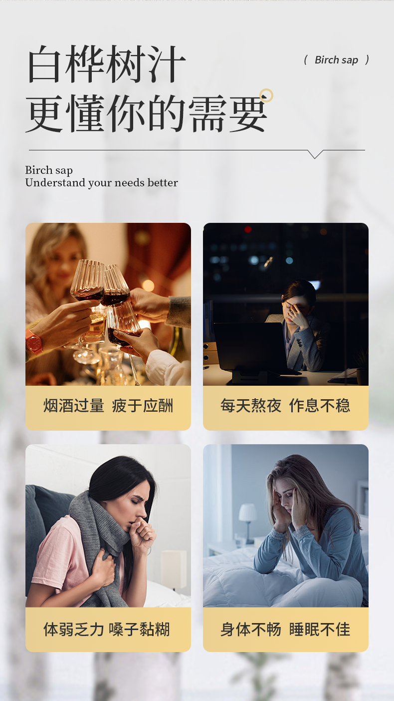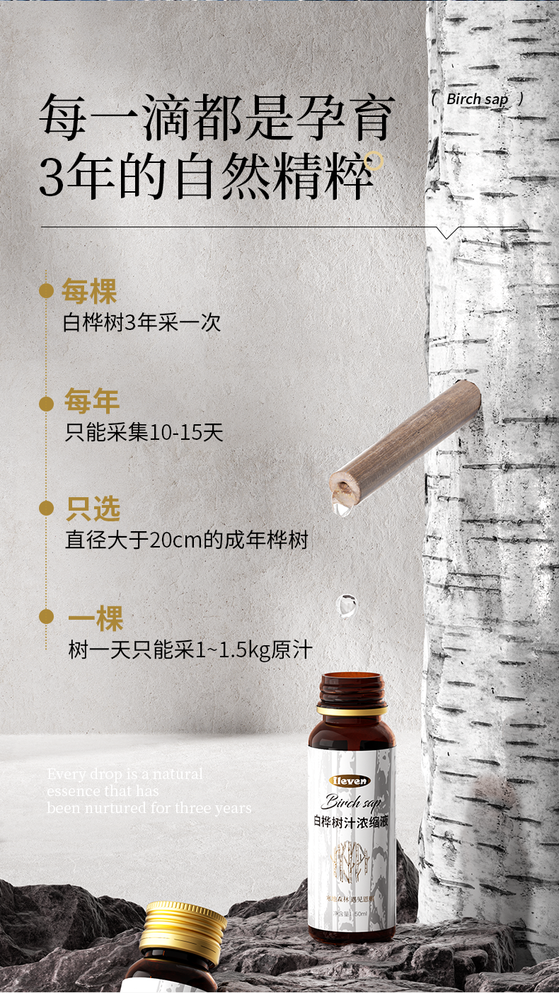 【提醒】:由于白桦树汁的氨基酸太丰富了,之前因为出现漏气发霉的情况,导致客户意见比较大,今年包装做了改善,盖子拧紧了一些,所以需要多点力气打开,同时因为是玻璃瓶子装,总避免不了滑丝的情况,如出现,可收集放一边,后期一起再找客服进行1:1更换即可,感谢各位的理解与支持。