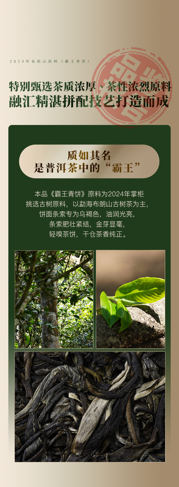新品上新重磅力作【霸王青饼】2024年布朗山古树春茶,专为老茶油制作,重口味产品 极具辨识度!357g/饼 拍5发6拍20发25