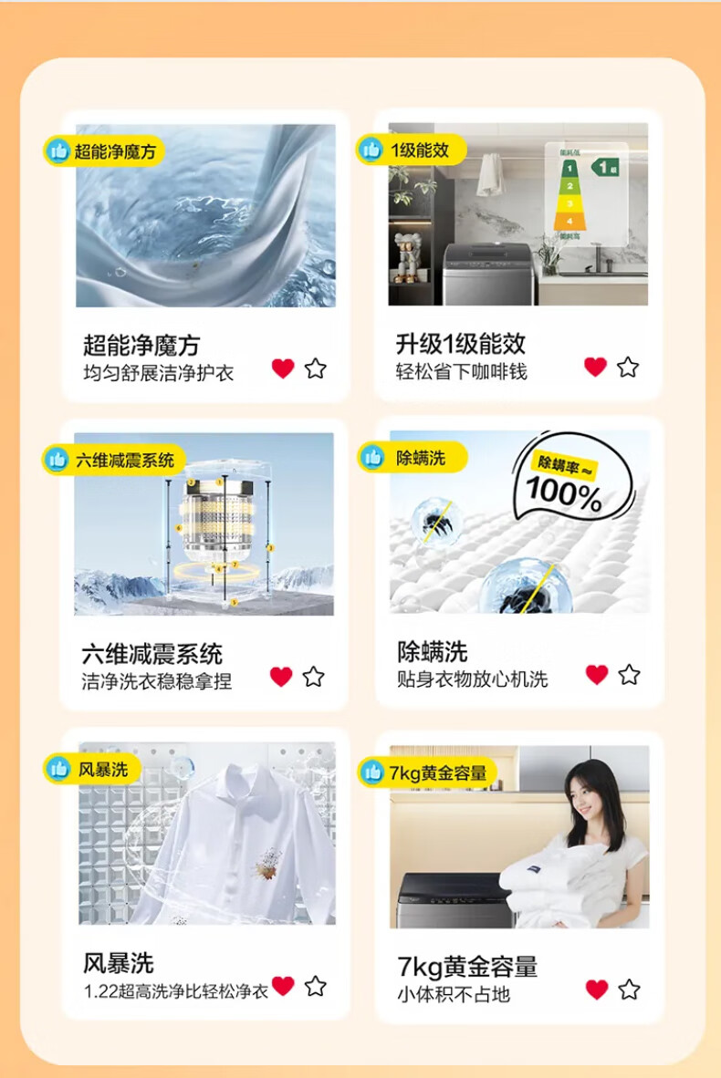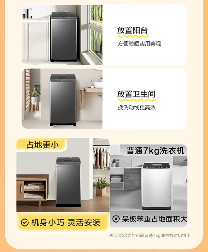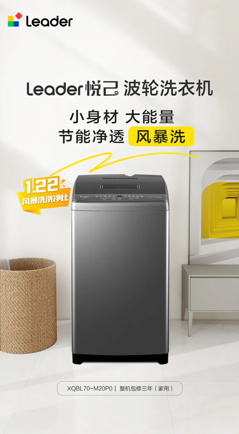 统帅轮洗衣机7公斤一级能效家用省水省电宿舍租房洗脱一体漂甩合一脱水XQBL70-M20P0