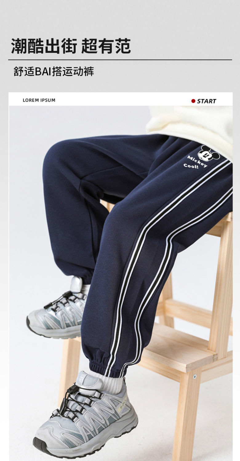 迪士尼男童裤子春秋外穿2025新款男大童春装儿童运动裤春季休闲裤