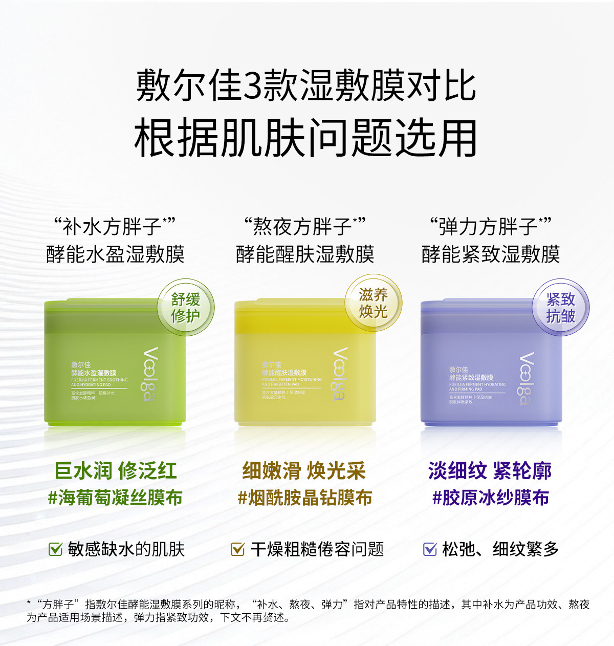 敷尔佳酵能 紧致/醒肤/水盈 湿敷膜155g(70片)/盒(方胖子)